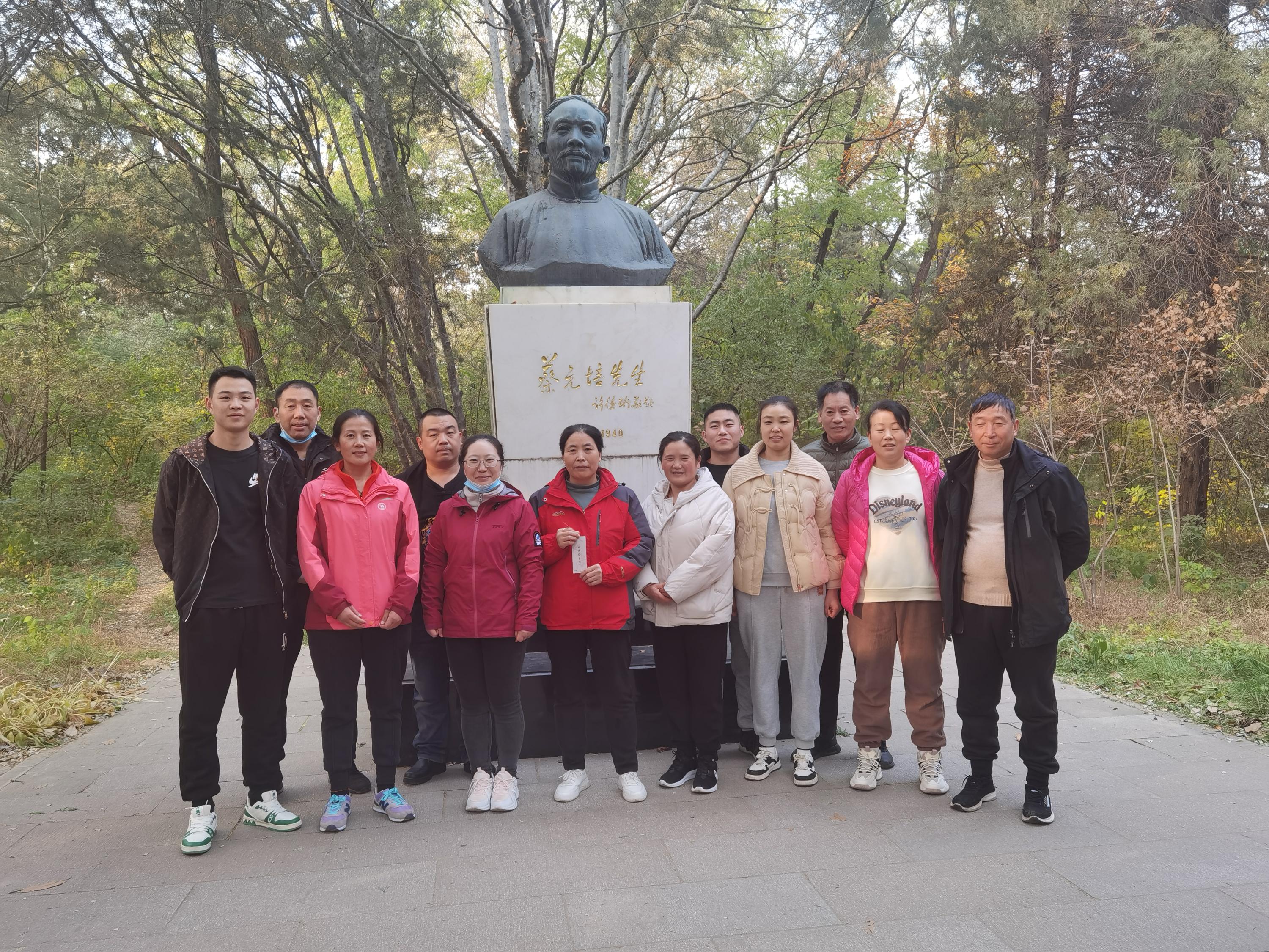 畅春园食堂员工在蔡元培铜像前合影