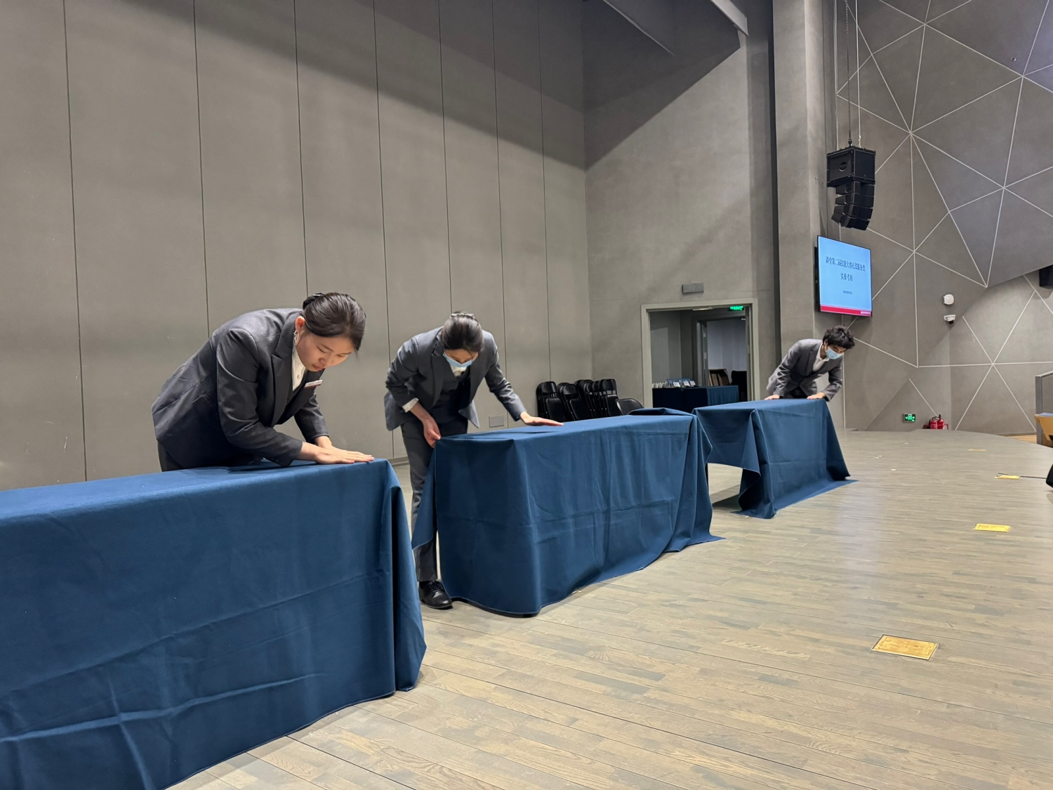 此次大赛比赛内容丰富,竞争激烈。舞台技术类比赛现场,音响师以耳朵测试分贝调控音响,灯光师通过颜色和效果变换渲染出契合现场音乐的舞台效果,舞台机械师则以秒和厘米计算操控吊杆,连贯有序地完成多步骤编程的装置效果。礼仪服务类比赛中,整齐划一的摆台、口味醇厚的咖啡、细致周到的贵宾服务展现出员工优良的礼仪服务素养。圆明园校区的工勤师傅参加了维修保障类比赛,破损的门窗、锁具、管线在参赛员工的巧手下快速修复。讲堂各部门文职员工则参加了办公软件的多场景应用和活动策划比赛。为保证比赛的公平公正,除相关部门负责人外,讲堂还特邀兄弟单位的专业人员担任评委,为员工比赛表现进行评分。