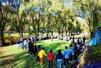 吃完午饭稍作休息,刘博老师带领大家来到户外草地上,此刻阳光正好,饭后的互动小游戏也正式开始。首先是拉近彼此关系的环环相扣小游戏,成员们通过钻、翻等方式将用手连接成的网一点点解开。接着,大家又进行了听指令做动作、小组合作翻纸牌等小游戏。在这个过程中,大家不仅享受了好玩的游戏,更能在合作中加深对不同成员的认识。最后,在返程途中,成员们介绍了自己所从事工作领域的情况,并真诚地分享了参与活动的感受,大家纷纷表示希望有更多的机会参与不同形式的联谊活动。