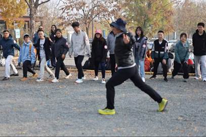 活动开始,刘博老师带领大家围成大圈进行了热身运动,激动人心的“破冰”活动为本次赏秋之旅注入无限活力,为大家搭建起友谊桥梁。