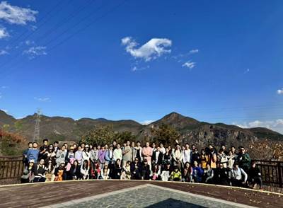 在雁栖湖的绿色走道上,大家满怀着热情,欣赏着美丽秋景的同时,感受着来自不同单位伙伴同行的喜悦,一路上都听见了大家的欢声笑语。登顶之后,漫山红叶、秋风温柔,扫清了大家长途跋涉的疲惫。