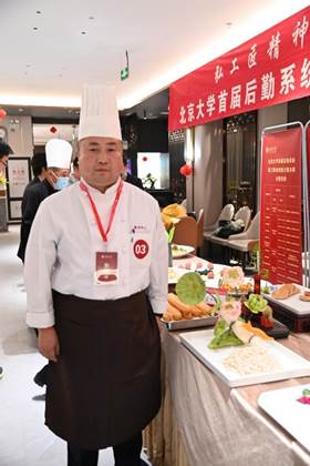 在餐饮行业已经奋斗23个年头的卢岭山,将青春和热血奉献给了自己所忠爱的事业。他现任艺园食堂厨师长,用自己深厚的专业知识和丰富的实践经验,陆续推出深受师生喜爱的新菜品,并先后10次获得中心优秀员工称号、后勤系统优秀工会积极分子等奖项,同时,带领团队荣获第五届团餐大赛(营养健康食堂专项赛)特金奖。