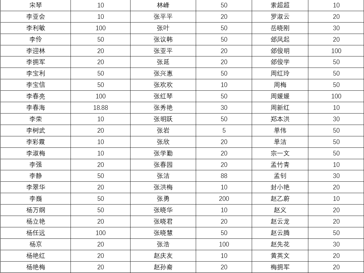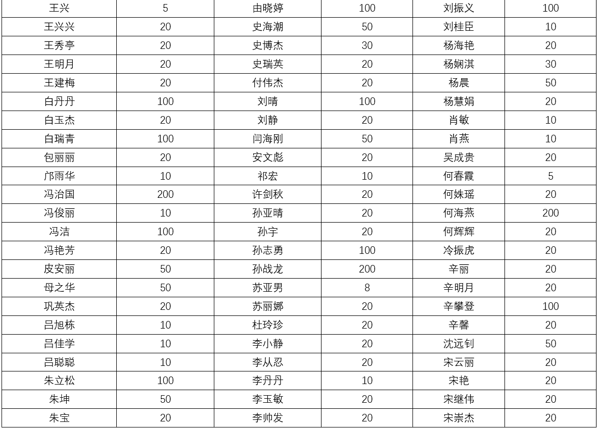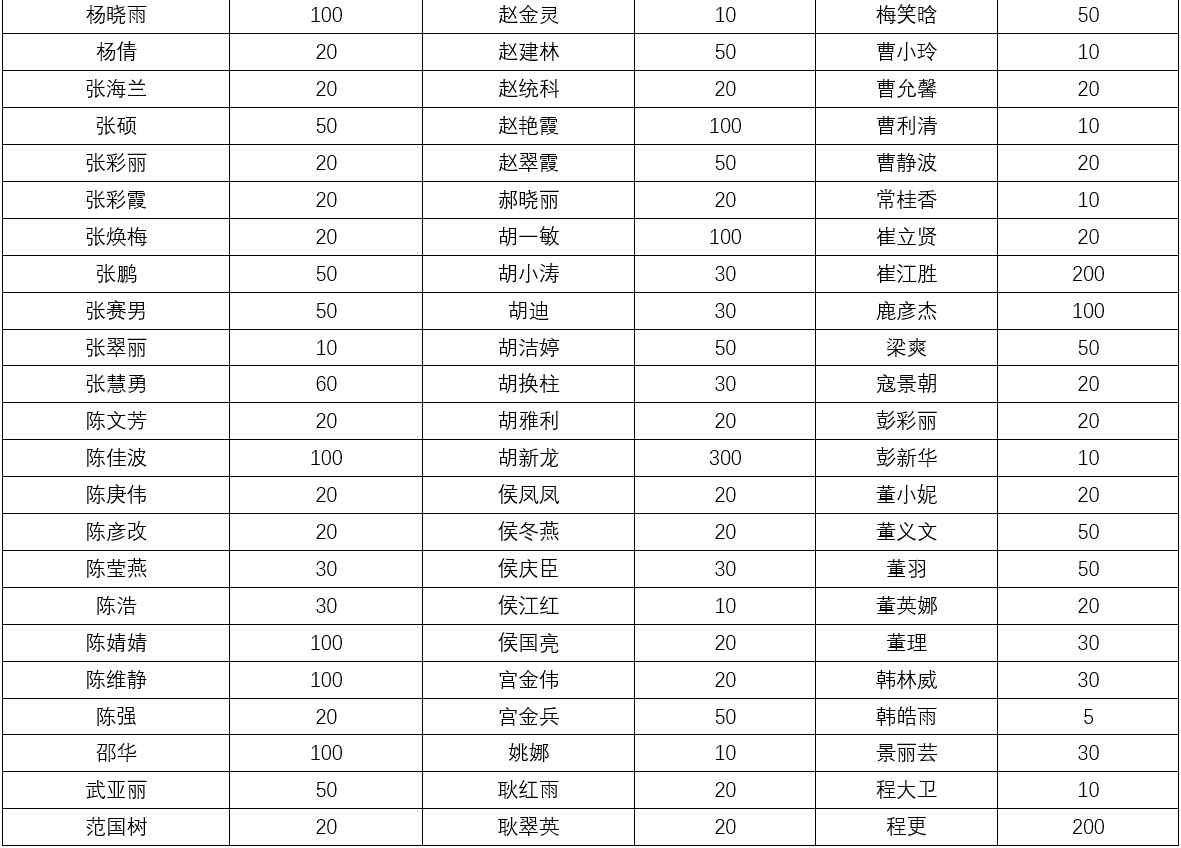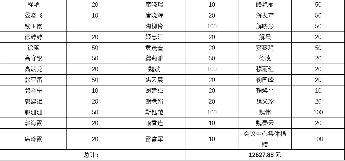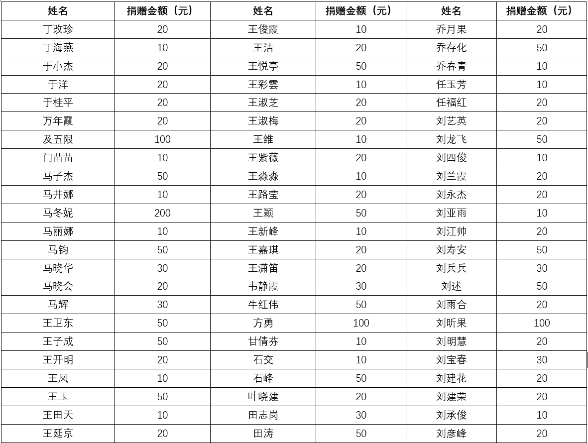 备注:按笔画顺序排序,线上捐款未计入其中。