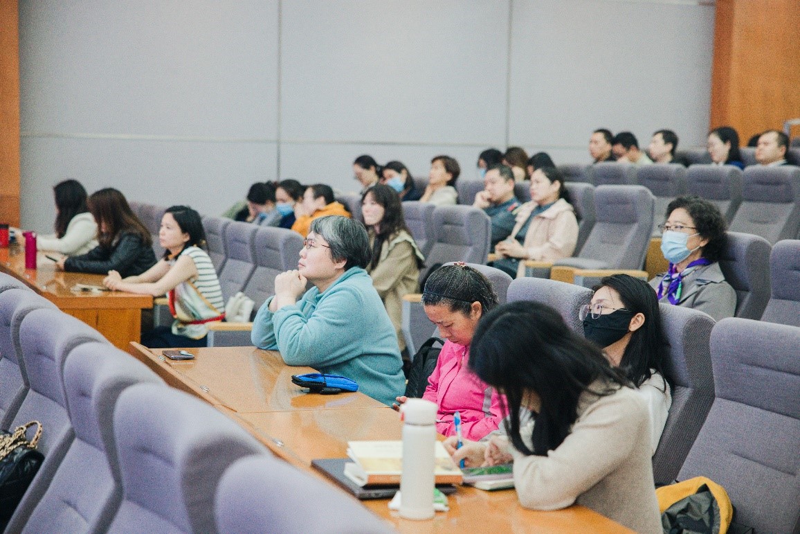 讲座现场气氛轻松,教职工积极参与互动。徐萌女士不仅解答了大家关于色彩应用的疑问,还提供了个性化的建议,使每位参与者都能从中获得实用的指导。