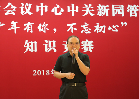 会议中心主任张胜群、副主任周锋为获奖选手及部门颁奖。张胜群主任对整场知识竞赛进作了精彩点评,并对参赛者的充分准备和良好发挥表示肯定。他指出,中关新园从无到有,从一座楼到九座楼,从六七人的小团队到600余人的大团队,已走过十周年,中关新园的成长和壮大离不开每位员工十年如一日的默默奉献和辛勤劳动。未来,中关新园人仍不应忘记,中关新园的生命之源是北京大学,成长之根是“服务”,也是“服务”成就了中关新园,成就了在这个园子工作的每个人。