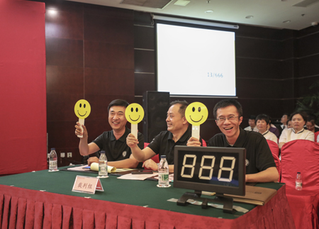 比赛分常规赛、后援团赛和决战赛三个环节,题型多样、内容丰富、难易结合,涵盖北大校史、中心概况、酒店行业应知应会、时事政治、各国风俗、英文会话等十个方面,内容立足管理部、服务北大、着眼时政、面向世界。选手们准备充分,答题踊跃,你追我赶,在常规赛必答环节胸有成竹,抢答环节奋勇争先,决战环节竭力拼搏,比赛气氛跌宕起伏、扣人心弦。为增加趣味性,设置“你比划我猜”“魔音歌曲(猜歌名)”游戏环节,将现场气氛推向高潮,台上台下欢笑连连。
