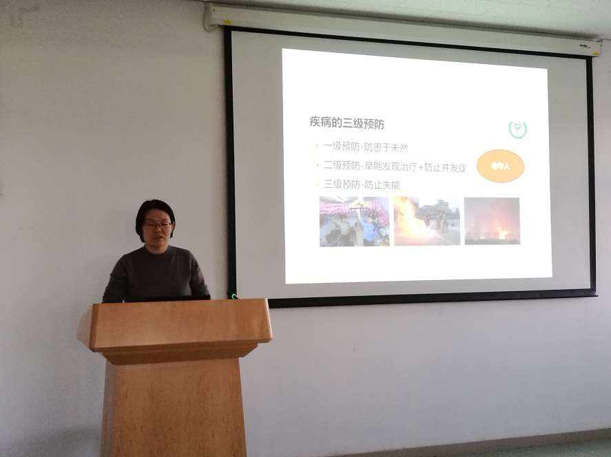 李卫菊以中老年健康管理为题,分别从老年疾病的三级预防、一级预防与健康的生活方式、二级预防与合理的健康检查、三级预防防止失能等方面进行了讲解,并从起居、运动、饮食、防病及日常生活中的健康注意事项提出了宝贵的建议,阐述了健康的养生知识。她强调,预防重于治疗,要做到合理膳食、适量运动、戒烟限酒、保持良好心态等相结合,养成良好的生活习惯,防范和控制常见疾病,保持身体健康。