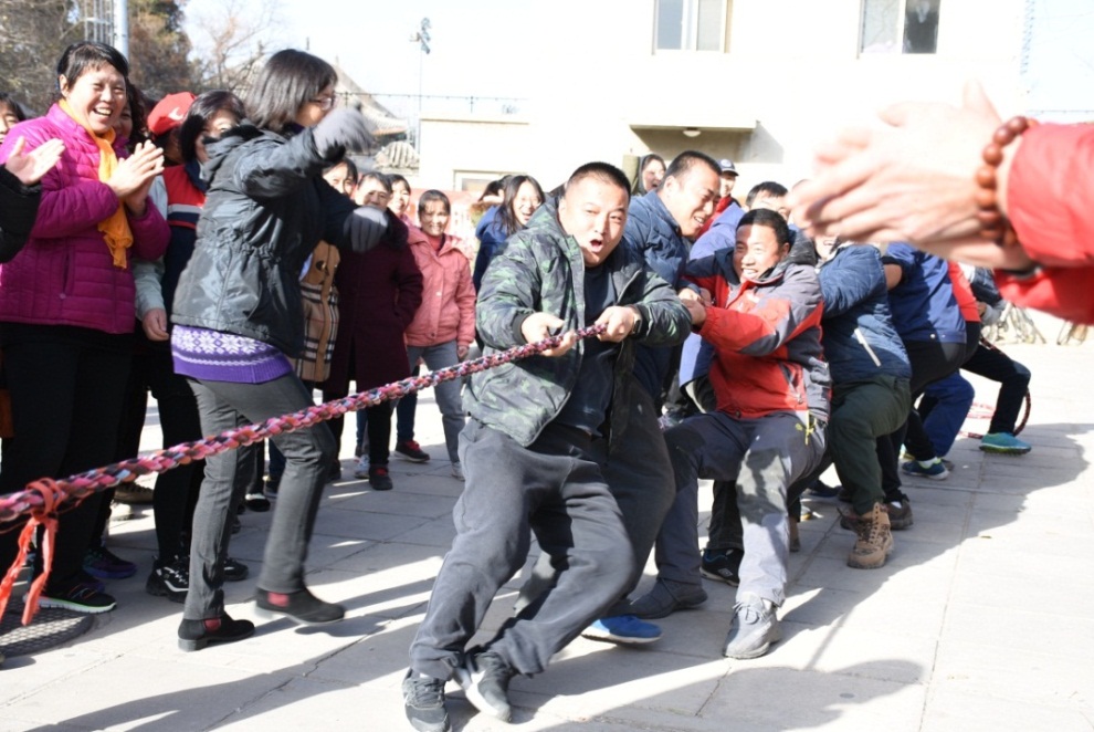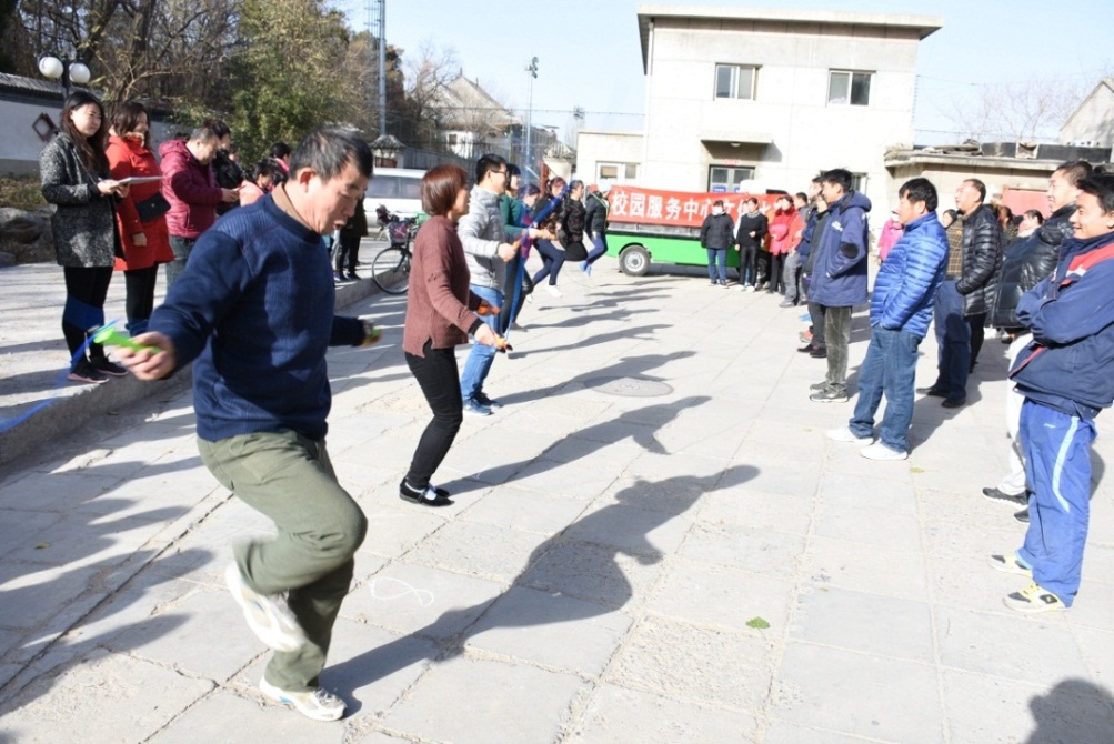 11月27日中午,跳绳及拔河比赛在中心园林大院举行。首先进行跳绳比赛,50余名选手分批次进行跳绳,计算一分钟内跳出的有效个数,从高到低排名,决出一二三等奖。选手们不论性别、年龄,各自铆足了劲儿,飞速甩动手中的跳绳,一次次跃起,在明媚的阳光中留下了矫健的身影,展示了活力与风采。随后进行拔河比赛,80名选手分成8队,每队10人,男女各4支队伍分别两两比赛,决出男女队冠军。现场气氛热烈,男女队员都充满了豪情,喊起号子,在响亮的加油声和热情的掌声中,奋力拽动手中的绳索,去争取胜利。