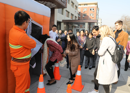 消防疏散演习当天,勺园还组织在场员工和同学们进行模拟灭火和烟雾逃生体验,保卫部消防员现场为大家详细讲解了灭火器使用方法、疏散逃生注意事项。在消防员指导下,现场勺园员工和广大师生三两结伴逐项亲身体验。