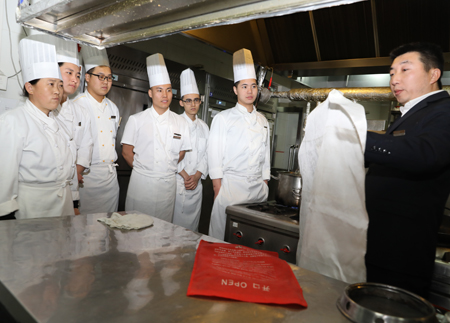 与此同时,在119消防安全宣传周期间,勺园积极开展消防安全系列专题培训深入一线部门,在餐饮部中、西厨房现场模拟油锅着火,灭火毯正确使用方法;组织新员工开展消防安全知识专题培训,以近年来全国重大火灾案例,结合勺园餐厅、客房、学生宿舍等易发安全问题的重点部位,从火灾预防、报警、初期火灾扑救等方面为员工普及消防安全知识,警示员工要高度重视消防安全,讲解并示范如何正确使用灭火器,以及使用过程中应当注意的事项,帮助员工面对火灾事故熟悉掌握正确的处理方式。
