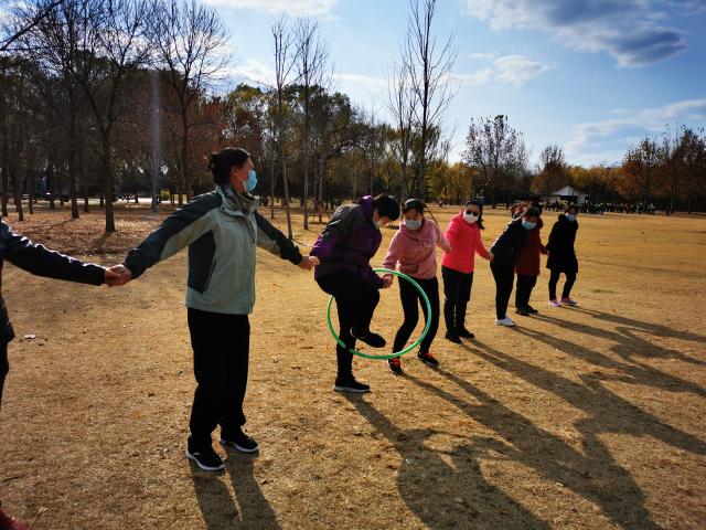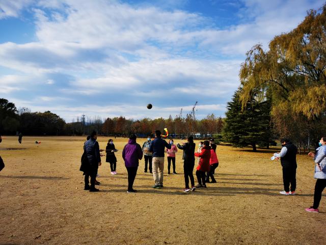 11月19日中午,校园服务中心2020年度趣味团建活动在海淀公园举行。冬日的暖阳驱走了寒冷,中心大部分员工利用休息时间,走出校园、走进户外,共同参加趣味团建活动。在场的员工分成十人一组,先后进行手拉手传呼啦圈、两人三足、“不倒森林”、同心鼓四个项目。在工会委员的组织下,每个小组都积极商讨策略,不断试验和改进技巧,大家通力合作、协调一致,努力取得好成绩。草坪上呼喊声、欢笑声此起彼伏,活动取得了预期的效果。