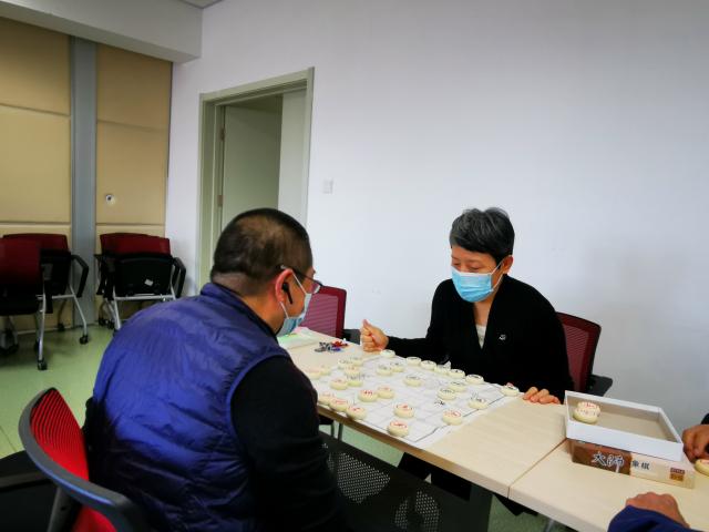 11月20日中午,校园服务中心2020年度棋艺比赛在43号楼517会议室举行。比赛分为象棋、跳棋和五子棋,员工们根据个人的爱好选择棋类,现场自由挑选对手,不限类别和场次,不排名次,重在参与,切磋和磨练棋艺。象棋比赛横马跳卒,车攻炮轰,你来我往,难解难分。跳棋组和五子棋比赛则欢快灵活,笑声阵阵。期间,校园服务中心党总支书记、主任张丽娜也亲自参与到棋艺大比拼中,与大家一起酣畅淋漓的杀上一盘。
