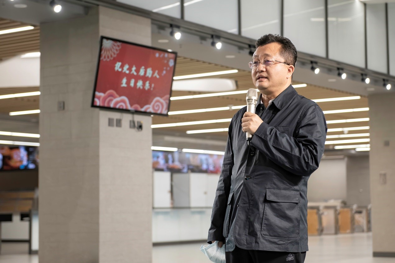 会议中心主任张胜群也勉励大家:“今年在疫情防控中北大后勤人勇于担当,冲在前面,做了很多工作,得到了领导和师生的肯定。谢谢大家,祝大家生日快乐!”