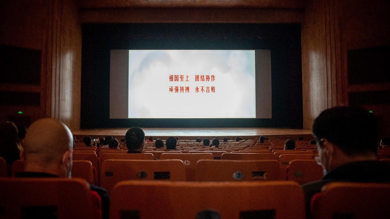 灯光渐暗,荧幕明亮,“祖国至上 团结协作 顽强拼搏 永不言败”这16个红色大字让很多后勤人的眼睛一下子湿润了。