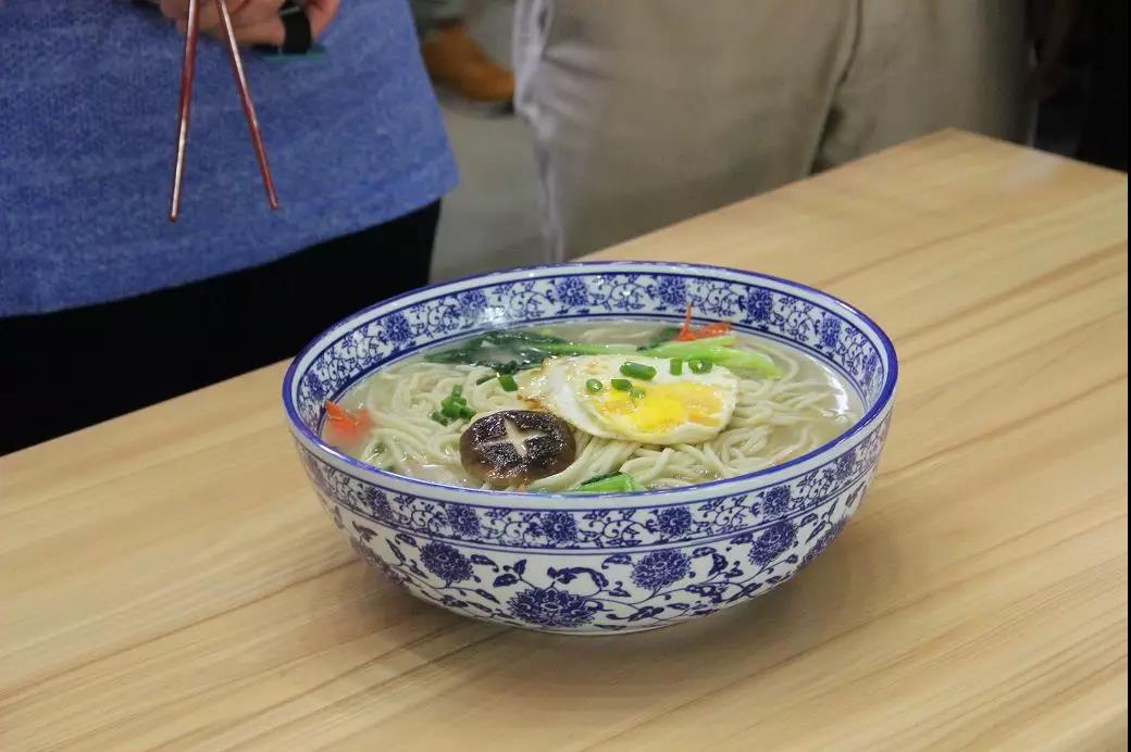 2019年5月11日中午,学一食堂西厅人头攒动。窗口里,九位大师傅有条不紊地准备着“寿面”:一碗面,一个蛋,香葱、香菜放一点,两根菠菜,一勺骨汤,加上两碟清爽小菜。