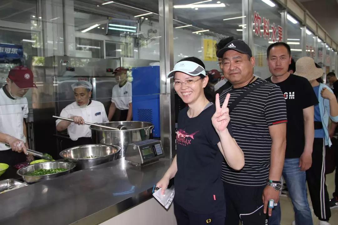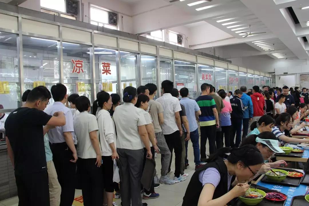 窗口外,刚刚结束工作的后勤人纷至沓来,排起长长的队。窗里窗外笑语盈盈: