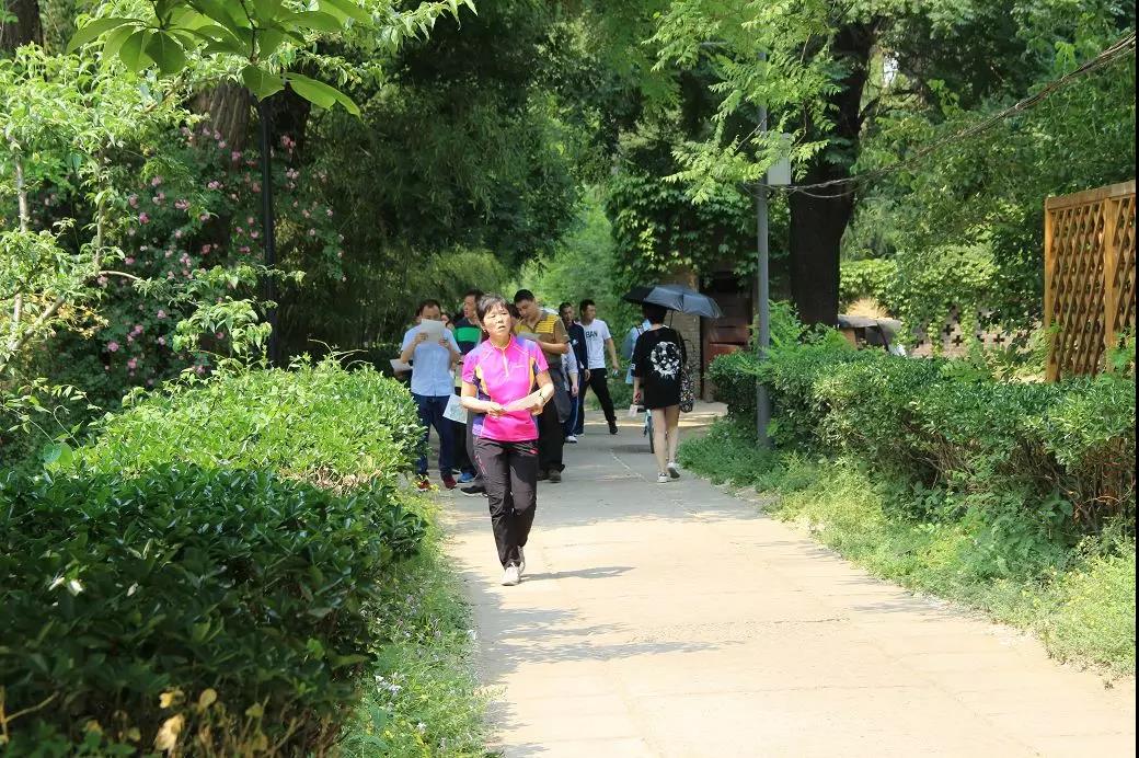 所谓“饭后百步走,活到九十九”。吃饱喝足,怎能不运动呢?(当然是饭后休息了一段时间)接下来就进入集体生日会活动的第二趴——后勤工会联合北大定向越野协会举办的校园趣味定向越野活动。对于活动主办方来说,最重要的事,就是让过生日的“北大后勤人”开心。因此这次定向越野活动以趣味为主,在校园中设置了6个趣味点位和2个定向点位,参赛者2-4人一组,分赴8个点位进行打卡,在6个趣味点需要完成特定的任务,方能前往下一个趣味点,点位上还放置了结合后勤业务工作专门设计的趣味知识展板。虽然在动员时,大家都说“年轻人就跑一跑,年纪大的跑不快,咱们就走快一点儿当散步”,但出发后大家都动力满满,在初夏的艳阳下,奔跑在校园中。
