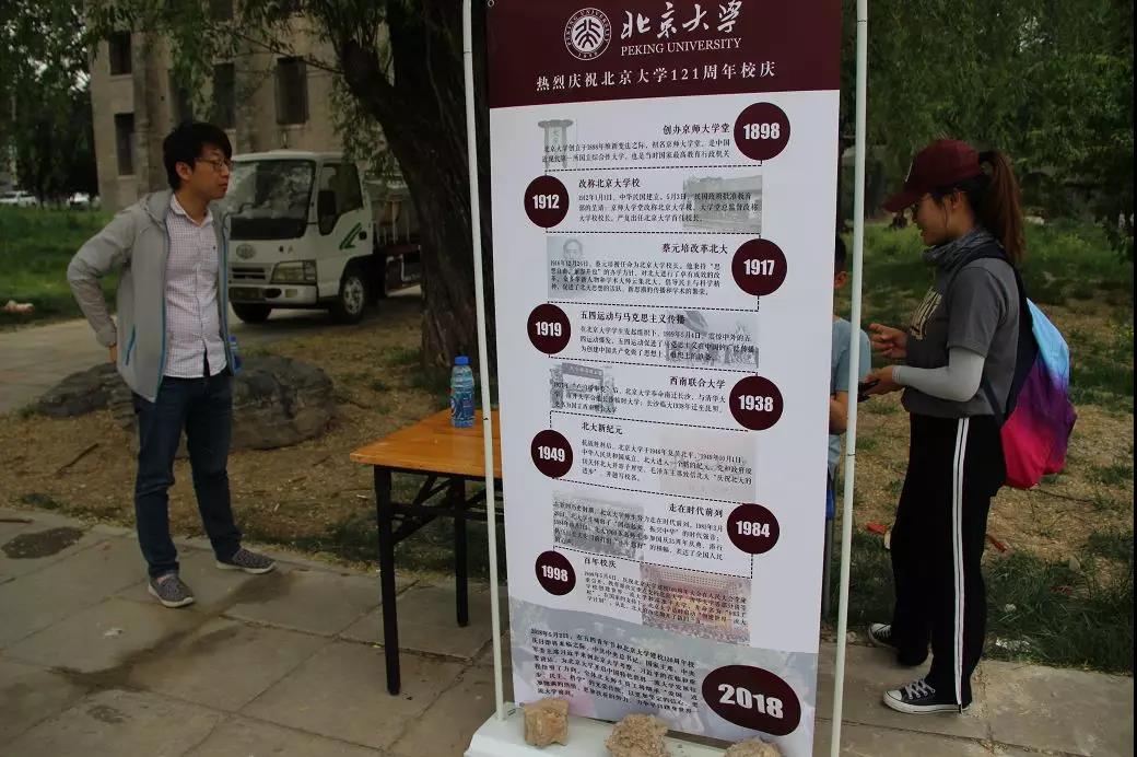 宣传板:121周年校庆宣传。这上面可是详细列出了北大从1898—2019年走过的时间历程哦。