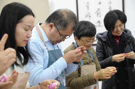 茶话会现场,大家欢聚一堂,分工合作,你揉面来,我擀皮,亲手包制饺子,体验和感受中华民族的传统习俗。大家围着热气升腾的饺子,一边品尝“劳动成果”,一边畅快交流,欢声笑语不断。这一环节不仅增强了团队协作精神,也加深了同事之间的深厚情谊。