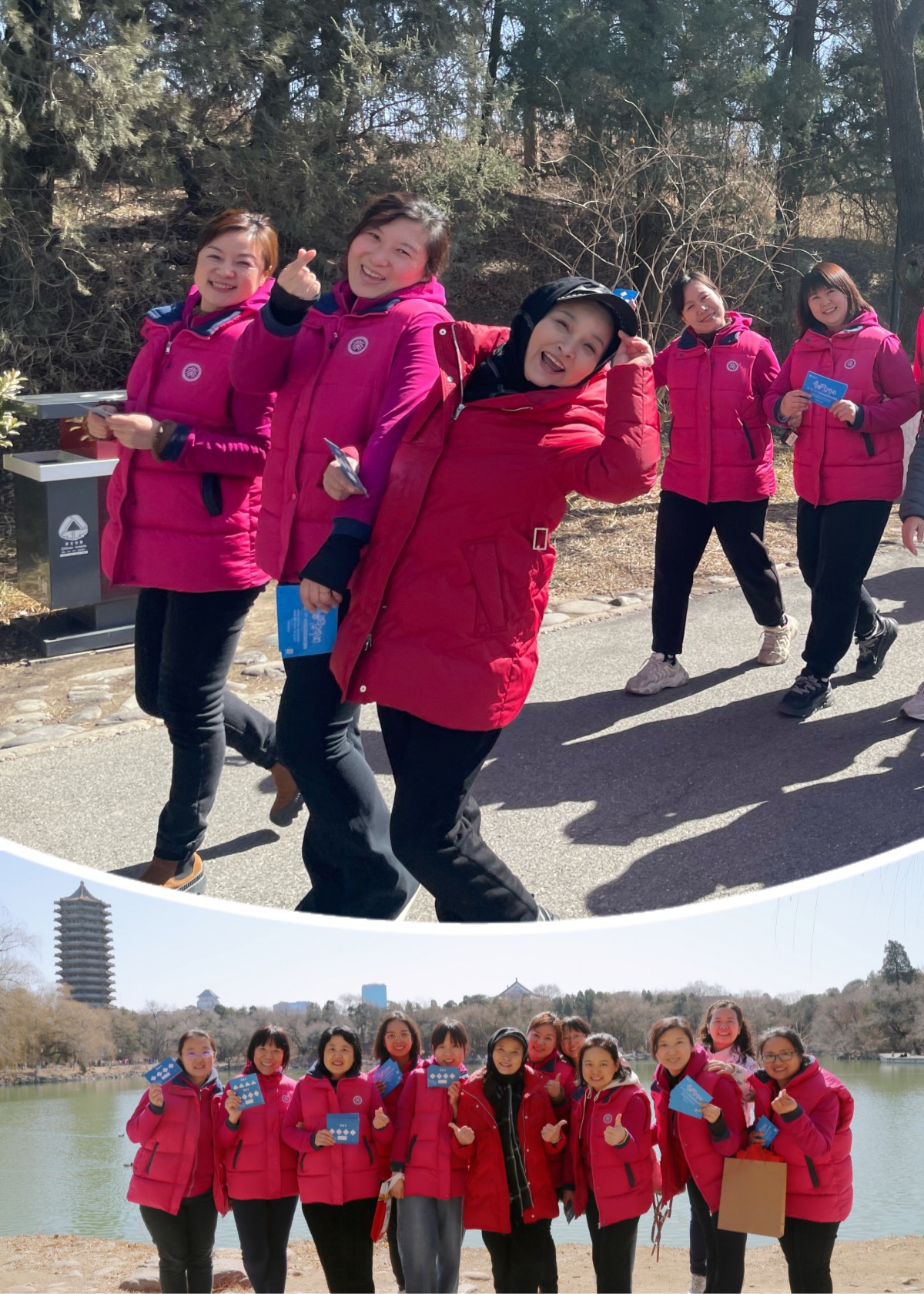 走进春天,待一朵桃花盛开,风有信花有约。3月8日中午除了留守园内值午睡的老师之外,燕东、蔚秀和新馨分园的老师们满怀热情,带着欢声笑语活动,身穿统一的园服,参加校工会举办的庆“三八”女教职工校园定向健步走活动。走在北大校园里,附属幼儿园的老师们又是一道粉红色的靓丽风景线,按照惯例老师们在博雅塔下留下了集体合影,将今年美好瞬间的定格。