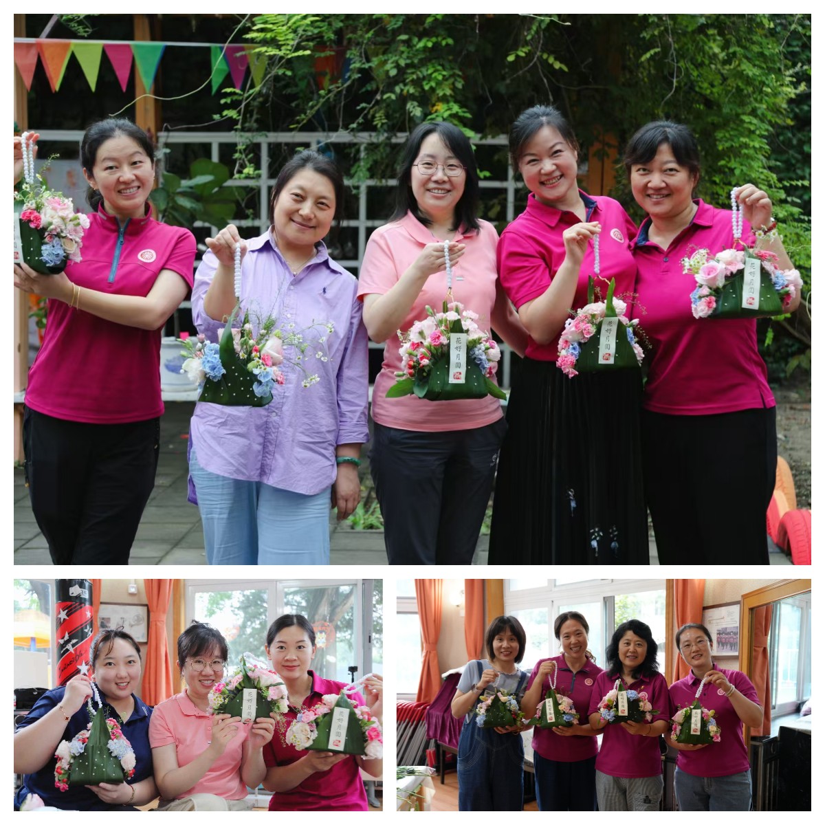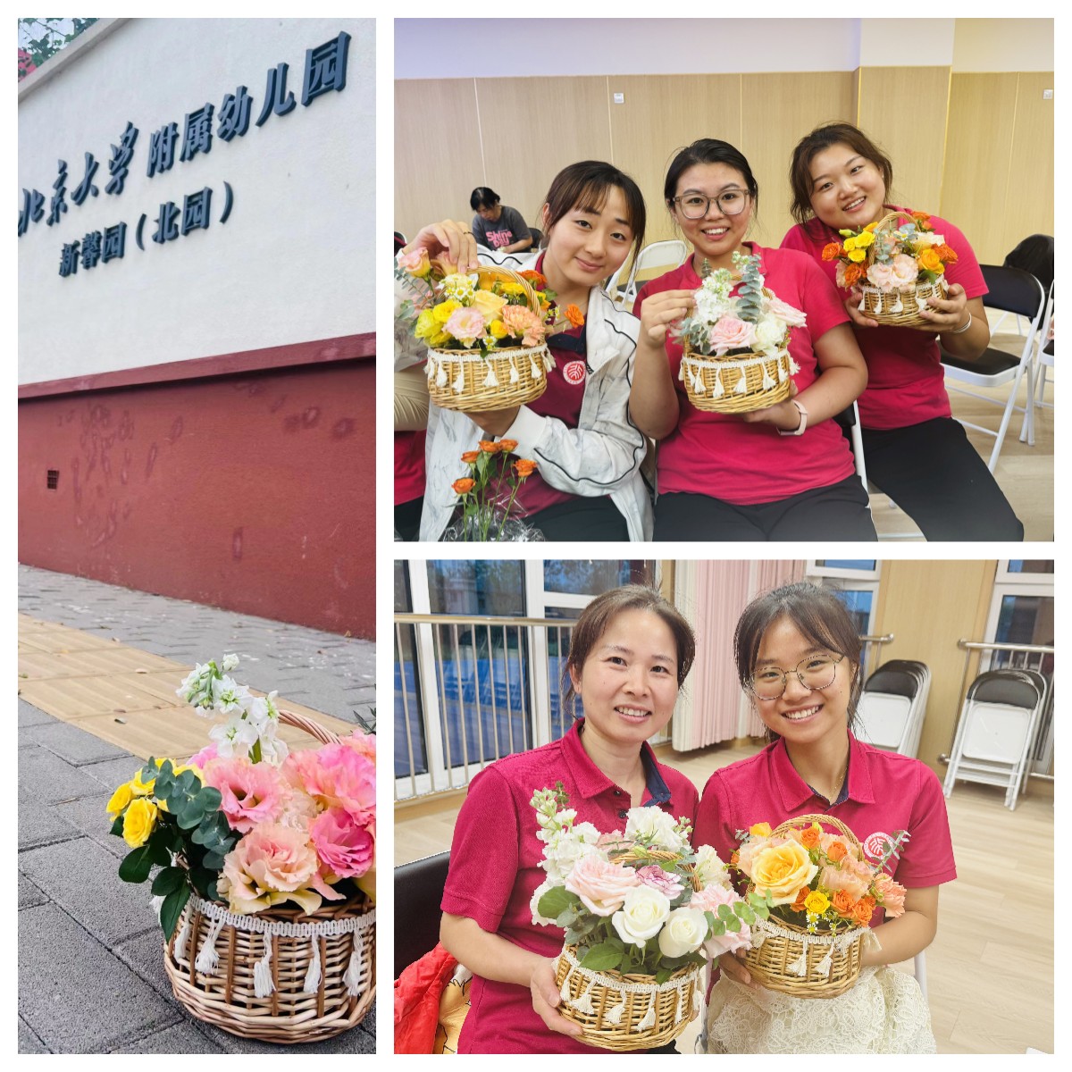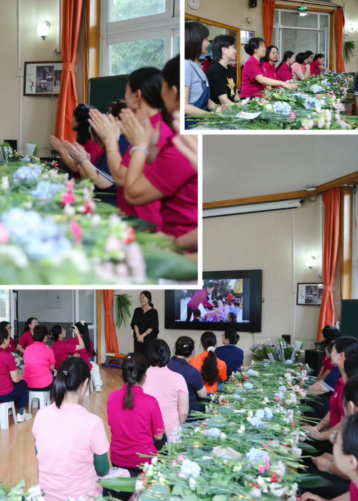 此外9月9日中午蔚秀分园精心策划了“一提花色润秋园”花艺沙龙活动,鼓励老师们始终坚守初心,一直走在开满鲜花的路上,传递爱与美的教育。蔚秀园的老师们还分享了自己珍藏的旧照片,通过照片呈现往日在园所工作的点点滴滴,激发美好回忆。蔚秀园教师节活动还邀请到了高级花艺师、高级架构花艺师带领老师们走入插花的艺术世界。“花香沐金秋,桃李竞芳菲”,修剪花枝巧妙搭配,将自然之美浓缩于一个提包,用原创的美为教师节增添色彩。