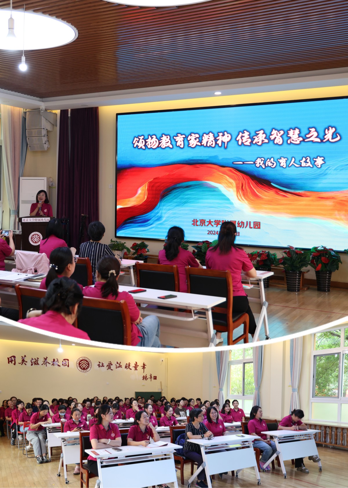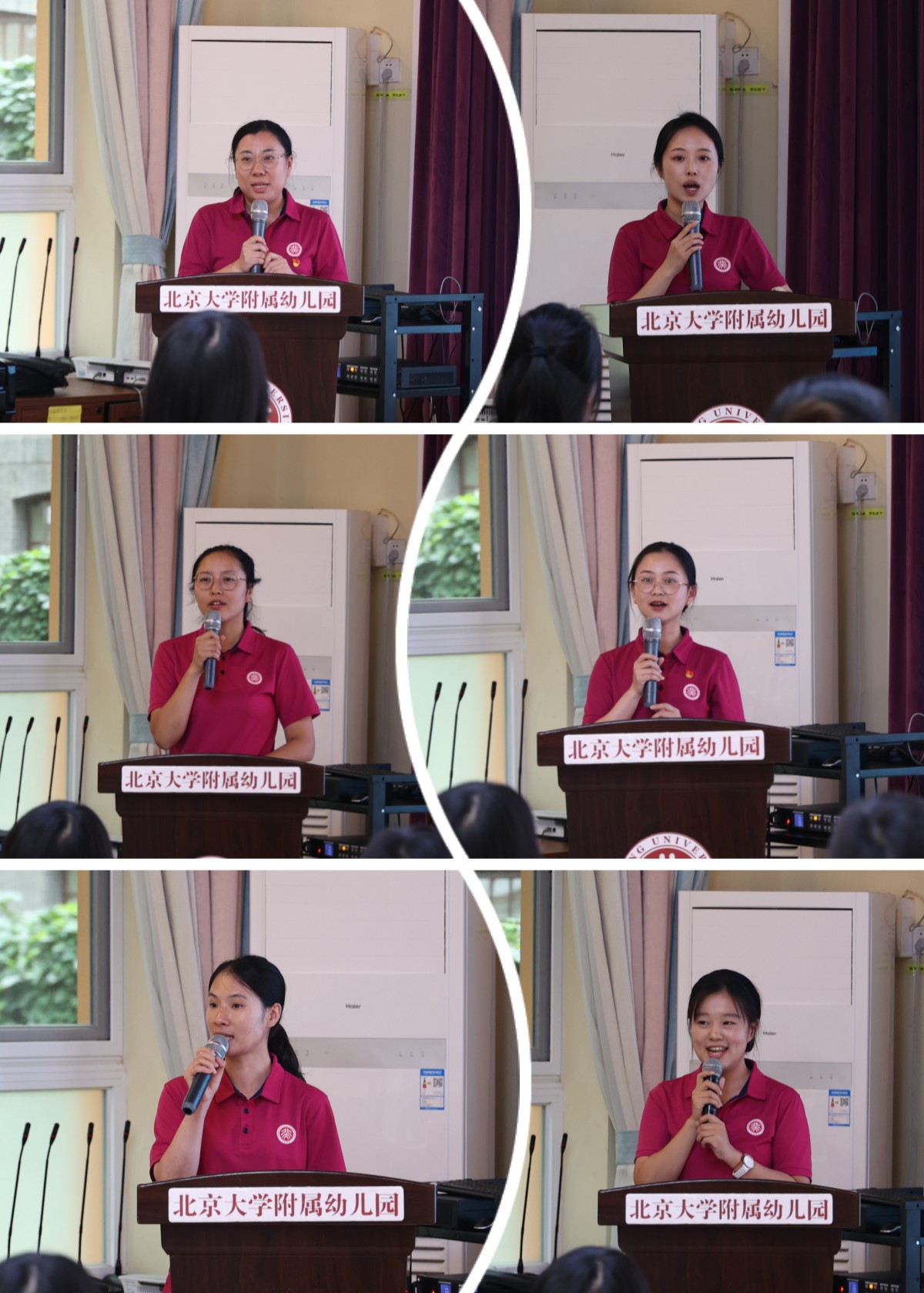 附属幼儿园的老师们大多已经在幼教岗位上辛勤耕耘了15年、20年、30年......她们依旧坚守初心,保持着对幼儿教育事业的热爱。教育家精神激励着每位老师,是她们成长的方向,不断锤炼自己,在平凡的岗位上默默奉献着。接下来是分享“我的育人故事”环节,按照班组和不同岗位,经过分园内部推选了六位教师代表,她们分别是燕东分园的贾楚晗、张春娟、刘晓霞,蔚秀分园的李鑫,新馨分园的覃秋凤、高雅琪,在今天这个特别的节日里分享自己在教育路上,温暖而又充满力量的故事。