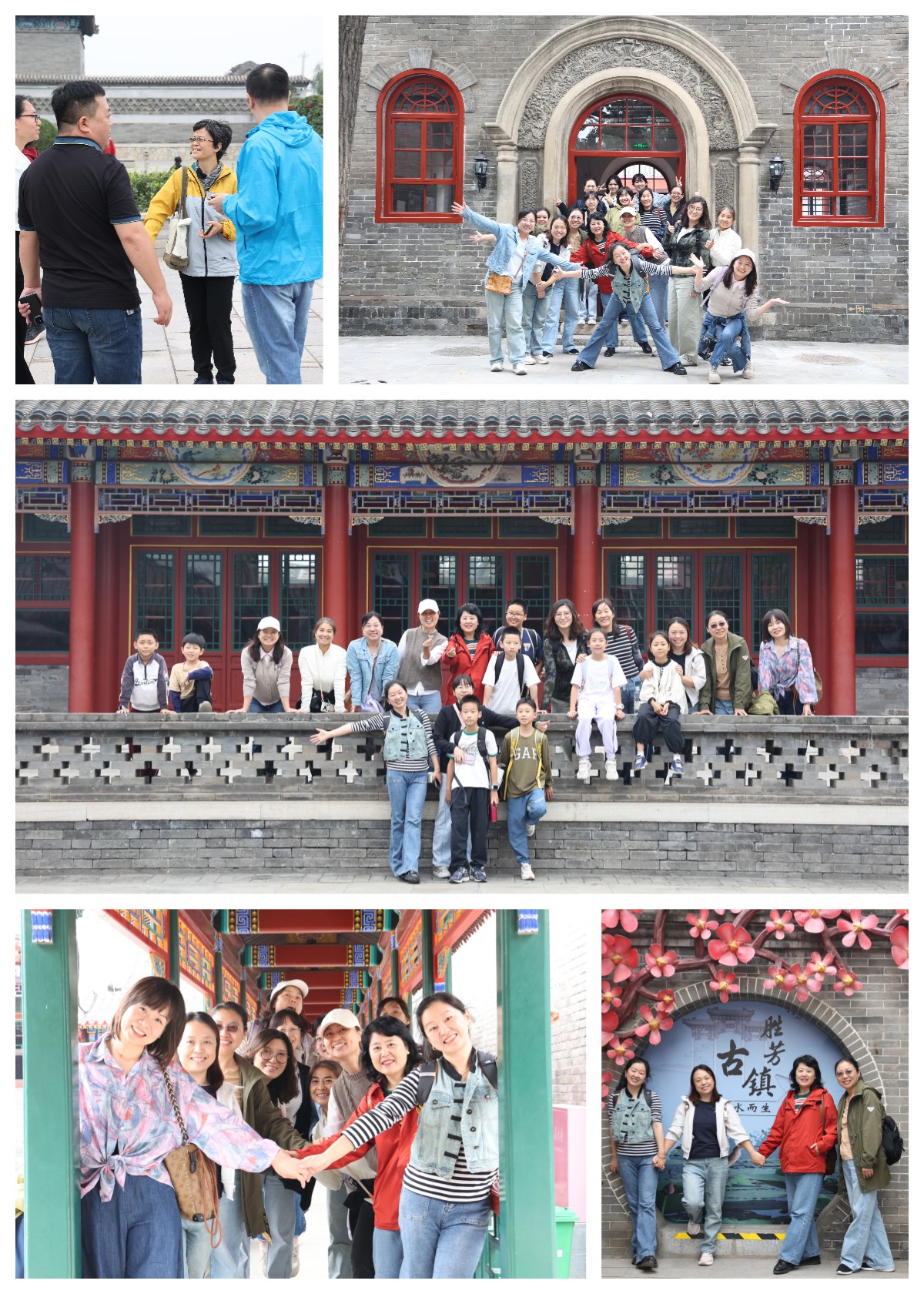 活动当天虽伴着些许阴天,却丝毫未减大家的热情。全体老师首先在古镇标志性建筑前合影留念,镜头定格下这一帧帧秋日同游的温馨瞬间。随后,老师们满怀期待、兴致勃勃地开启了 “北方江南水乡” 文化探访之旅。