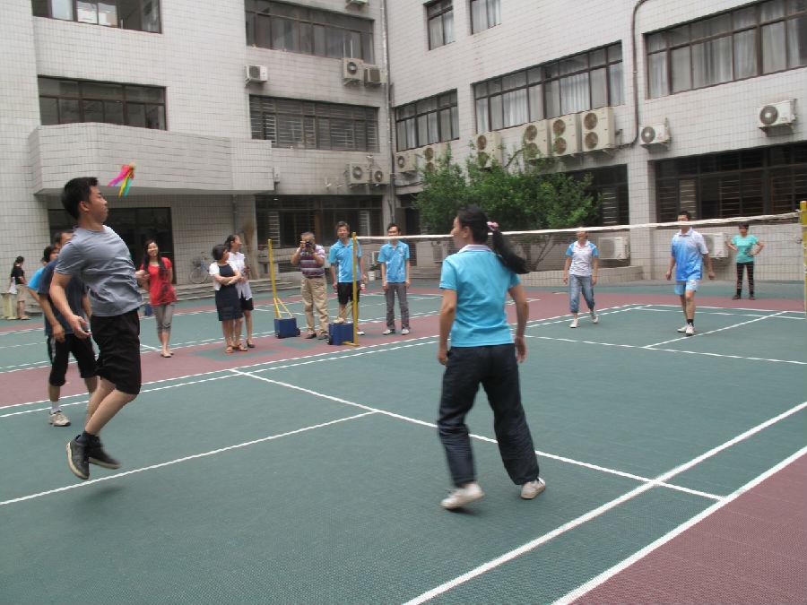 2013年6月19日,计算中心一队和二队同时迎来了小组赛第一场比赛,毽球比赛就此掀开了战幕。比赛在理科一号楼天井举行,老师们热情洋溢,充满信心。为增加群众参与性,参赛队伍以部门为单位,每6人为一支代表队。由范雪松、杨旭、王素美、张晓军、路遥、付中南等几位老师组成的计算中心一队和由马皓、崔建、彭一明、张文焕、李若淼、高回忆等几位老师组成的计算中心二队在比赛过程中的表现令人印象深刻。他们全神贯注于毽子上,从容不迫又灵活自如的控制着毽子,毽子在他们的脚上似有生命,灵动而有活力。毽子每一次在他们脚尖弹动“轻舞”,让我们为比赛紧张而激动,扣人心弦……