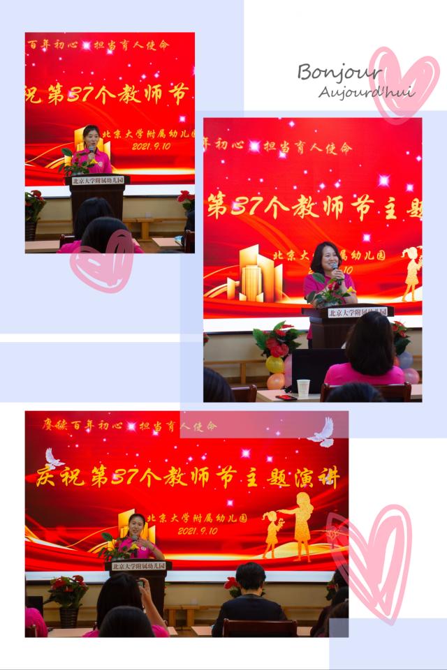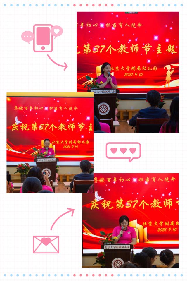 通过今天的教师节主题活动,既营造了良好的节日氛围,又增强了幼儿园教师身为人师的幸福感和责任感。同时也感受到了老师和孩子们之间那份真挚热烈的爱,让这份爱在北大幼儿园生根发芽,茁壮成长,一年四季,阳光都在!