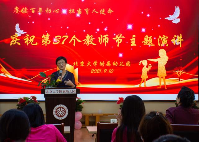 金秋九月,感恩的时节,在第37个教师节来临之际,北大附属幼儿园开展了“赓续百年初心 牢记育人使命”的教师节主题活动,旨在加强师德师风建设,推进立德树人根本任务,提升教师职业幸福感。这次教师节活动我们也邀请到后勤直属党委董晓华书记和幼儿园法制副园长赵久立警官参加。