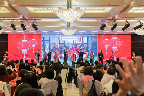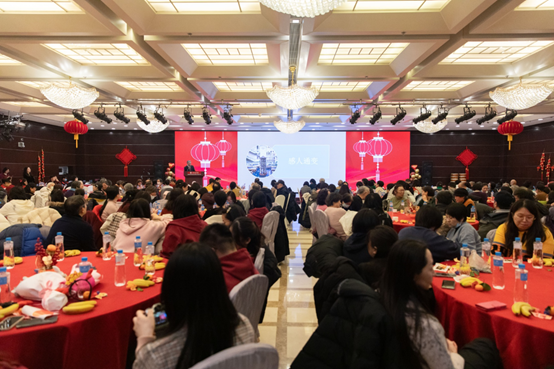 猜词游戏更是把活动推向了高潮,“你来比划我来猜”不仅考验个人想象力和表达能力,更是团队协作和默契的体现。舞台上馆员老师们机智的表达、幽默感十足的肢体动作引得台下观众们连声叫好,掌声不断!大厅里春意盎然、其乐融融。新老馆员欢聚一堂,叙友情、谈发展,辞旧岁、迎新春。