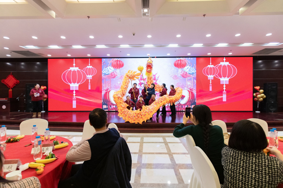 开场鼓《龙鼓争鸣》以激昂的鼓声拉开了序幕,舞龙节目《祥龙献瑞》以灵动的龙身展现了吉祥和喜庆,歌舞诗串烧《龙行龘龘》以多样的形式表达了对新年的祝愿,离退休馆员们合唱的《绒花》以优美的歌声表达了对祖国的热爱,舞蹈串烧《龙飞凤舞》以动感十足的动作展示了馆员的活力和魅力,古琴吟诵毛泽东《卜算子·咏梅》以悠扬的琴声配合优美流畅的韵律回顾了经典,歌舞串烧《协同广播体操》以欢快的节奏展现了馆员们的团结和协作。