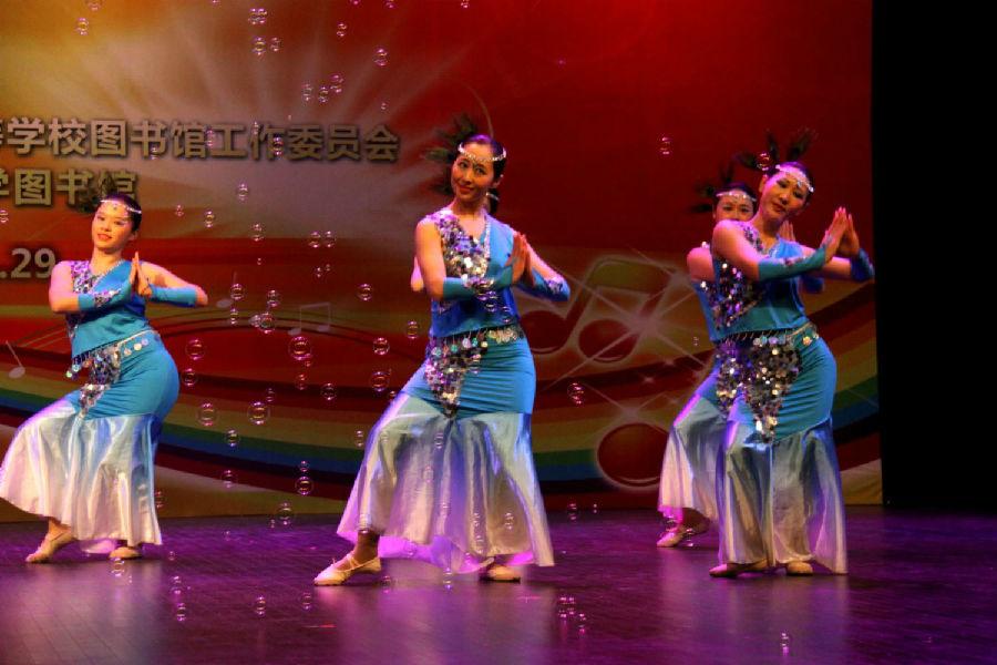 2012年11月29日图书馆表演的傣族舞《竹楼情歌》在北京地区高校图书馆文艺汇演中以精彩的表现征服了现场的评委和观众,一举夺得特等奖。