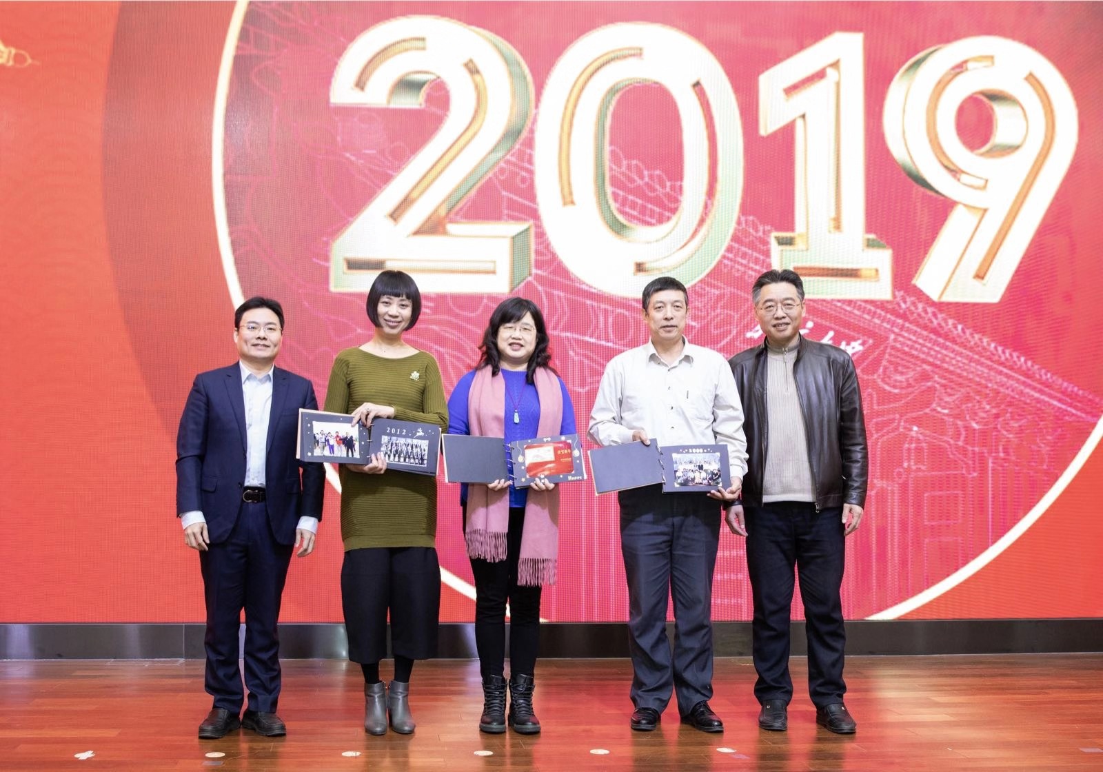 会上,陈建龙馆长作了年终总结报告,他以“出发”、“馆庆”、“完善”、“善贷”、“搬迁”、“现代化”、“李大钊”、“2018”、“2019”八个关键词总结北大图书馆的2018年,并借此回顾了过去一年图书馆各部门的工作亮点,肯定了全体同仁这一年的辛勤付出。尤其对120周年馆庆的成功圆满举办给予了诚挚而热烈的表扬。随后,陈馆长与郑清文书记分别为上一届的三位副馆长肖珑老师、聂华老师、陈凌老师赠送了纪念相册,感谢他们这些年对图书馆的付出。随后,图书馆新一届领导集体以三句半的方式向全体员工拜年。
