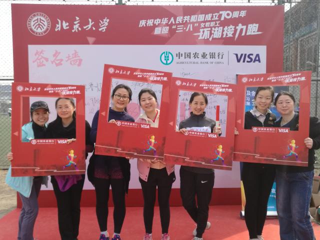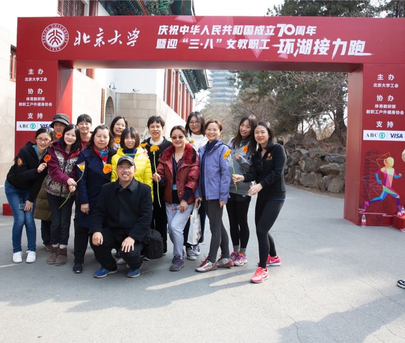 3月8日,来自全校各院系及部门的1323名女教职工未名湖畔,参加校工会与体教部联合举办的“庆祝中华人民共和国成立70周年暨迎“三八”女教职工环湖接力跑”活动。用环湖接力跑的活动形式庆祝自己的节日。图书馆组织了10支队伍、70人参与接力跑活动。