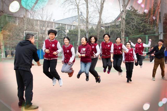 3月11日中午,老师们齐聚二体操场。首先进行的是1分钟团体大绳项目。两位男老师快速摇动着大绳,八名女老师健步如飞,跟随着节奏在绳间跳跃,活力满满。赛后老师们仍意犹未尽,表示要多加练习,争取来年取得更好的成绩。锻炼第一,比赛第二,老师们绽放的笑颜是对趣味赛的最好诠释。