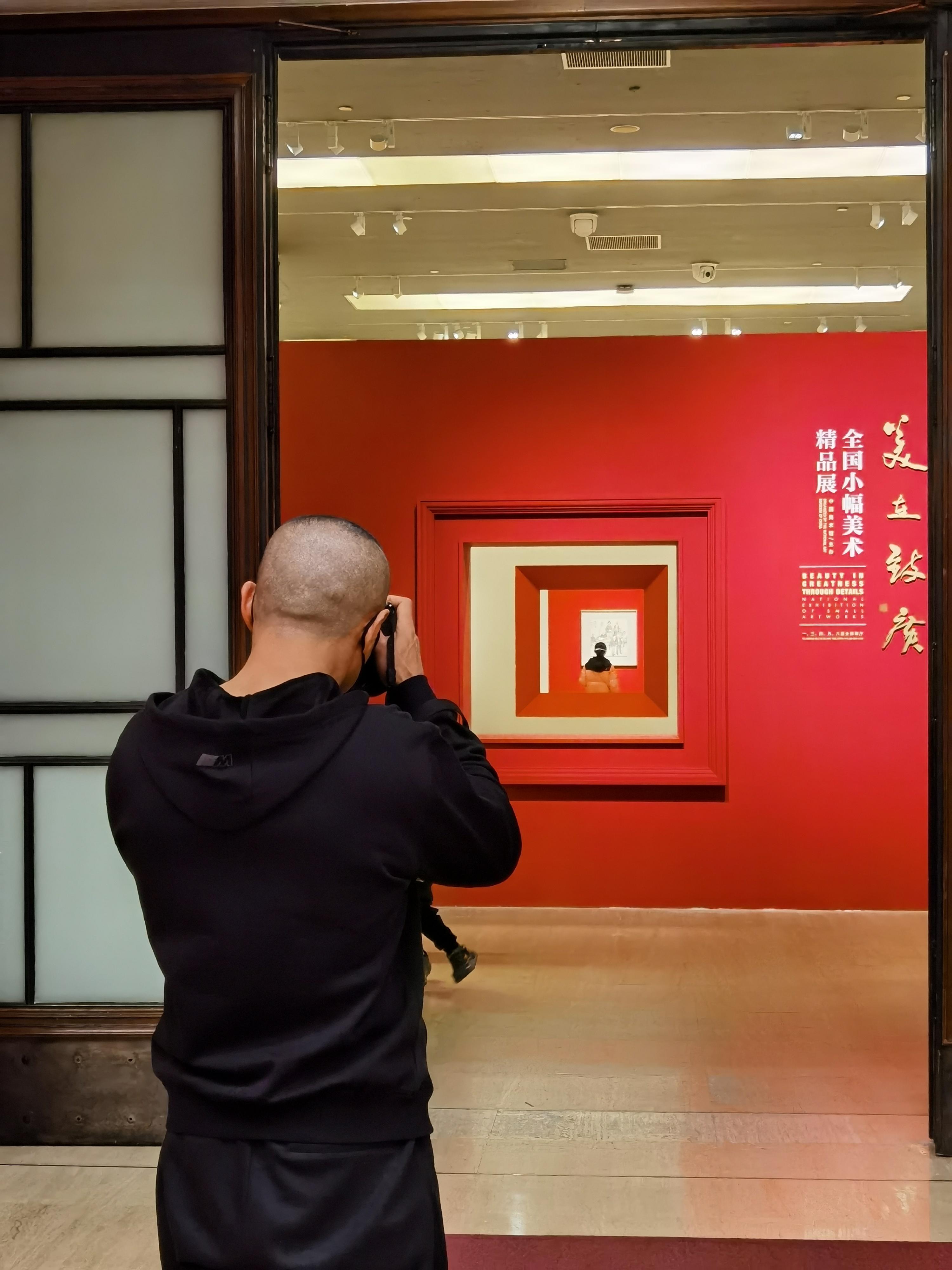 在中国美术馆的春节展上,一位摄影爱好者在拍摄场馆里一处有特色的设计。