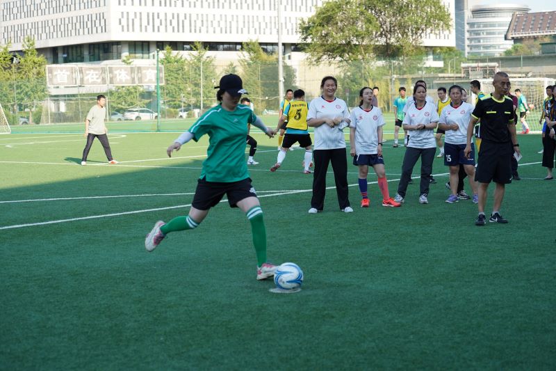 6月21日傍晚,暑热炎炎,2023年北京大学教职工足球赛女子点球射门赛决赛拉开战幕。出版社女队上届止步四强,这届发挥稳定顺利挺进8强,力争有所超越。