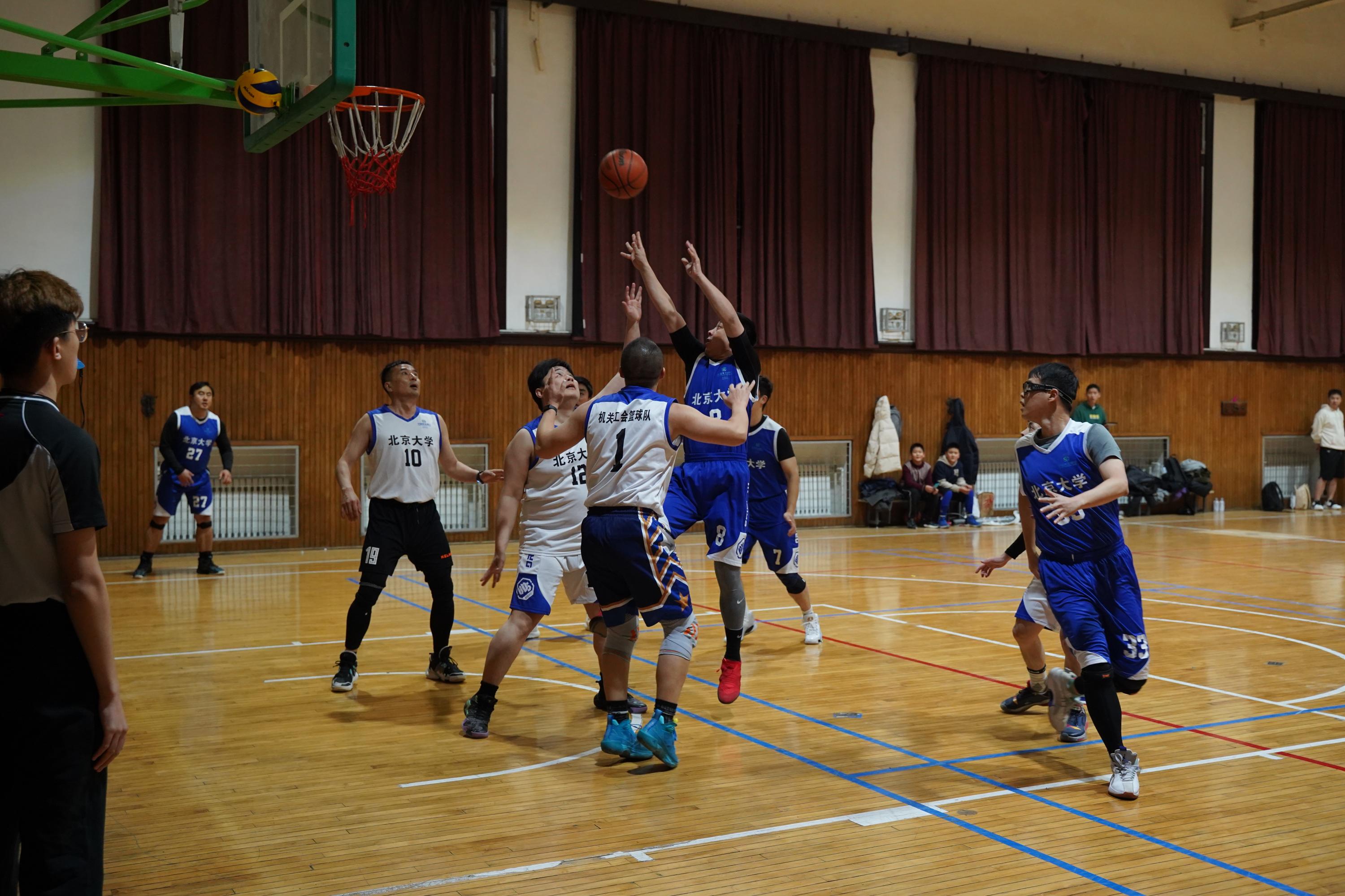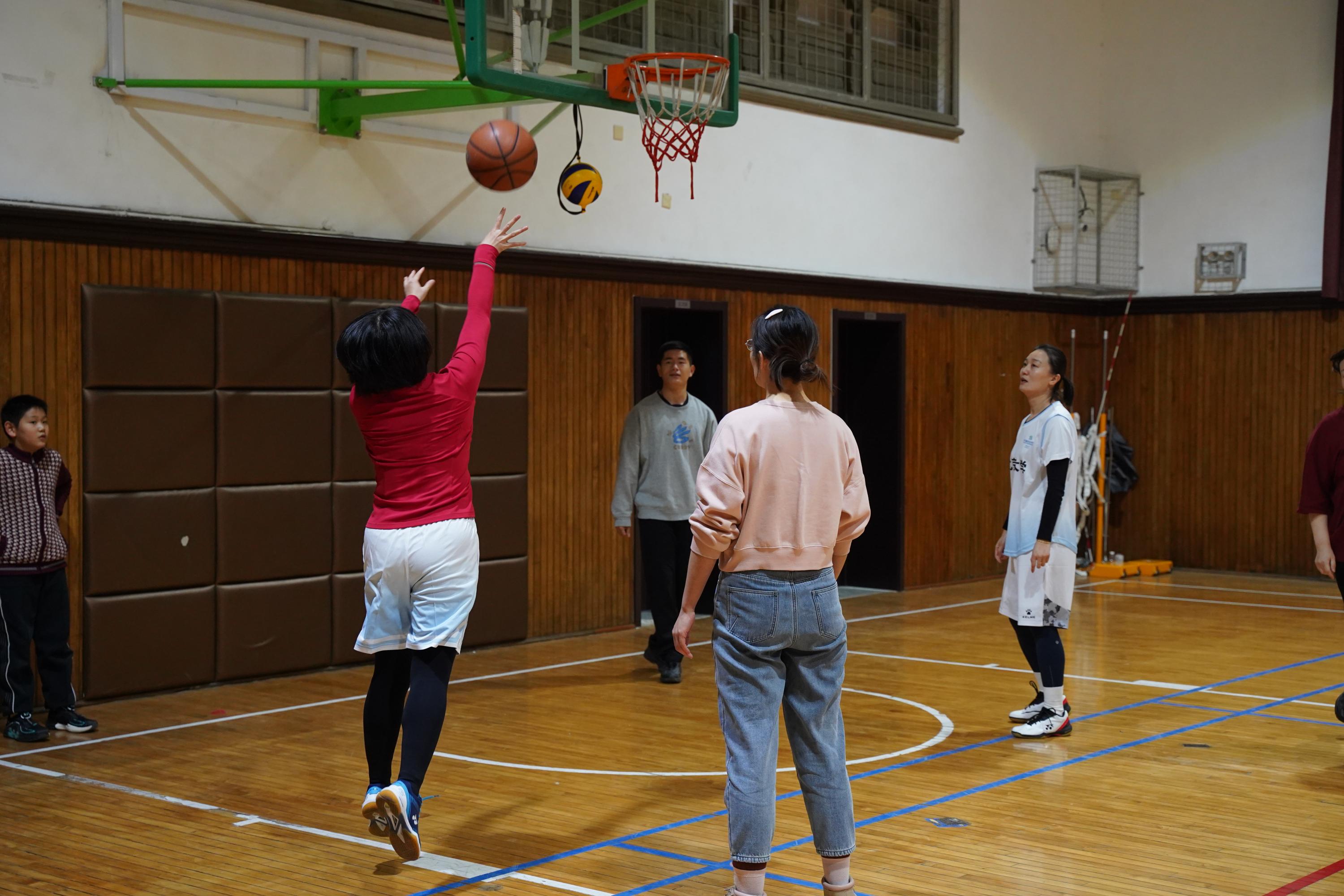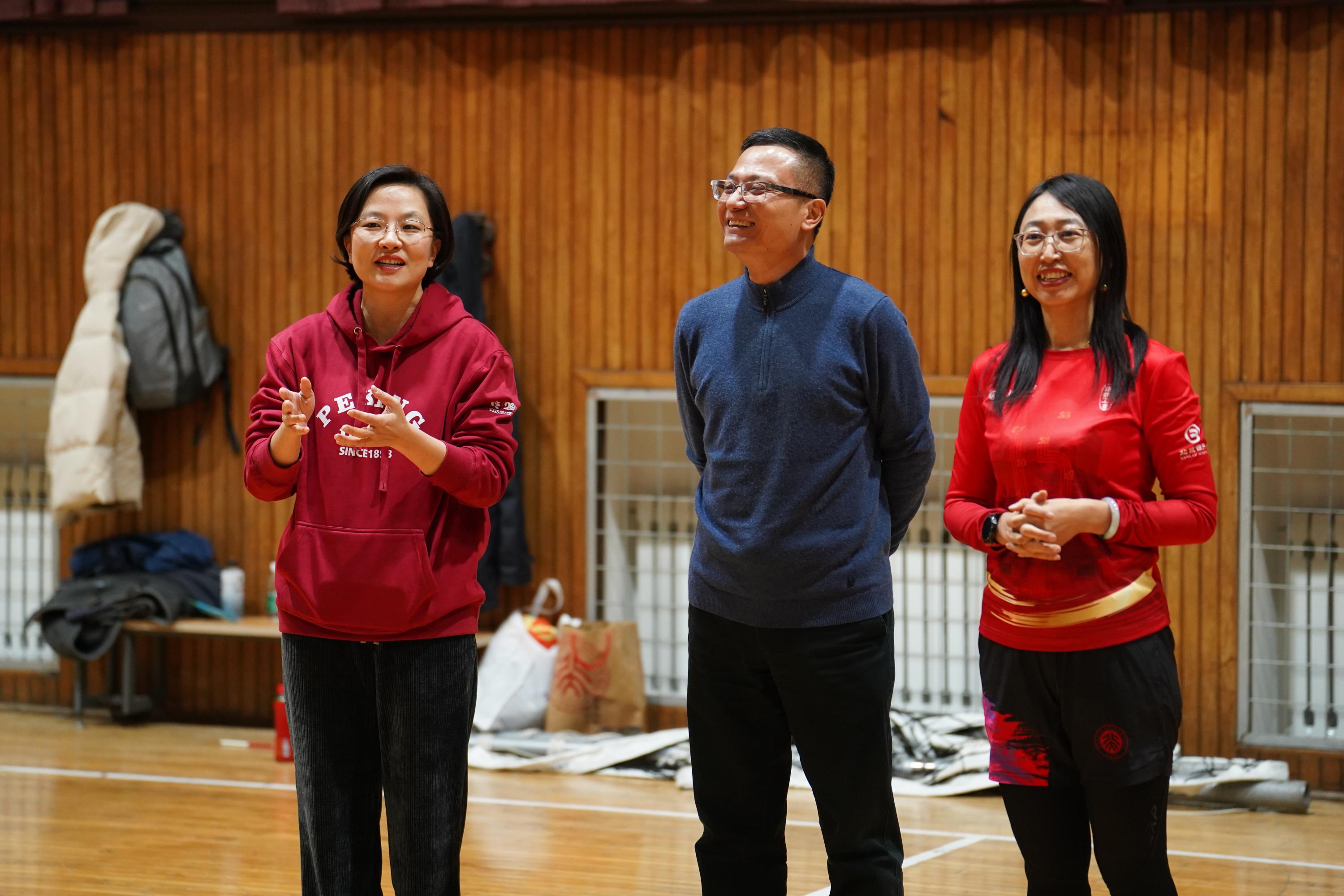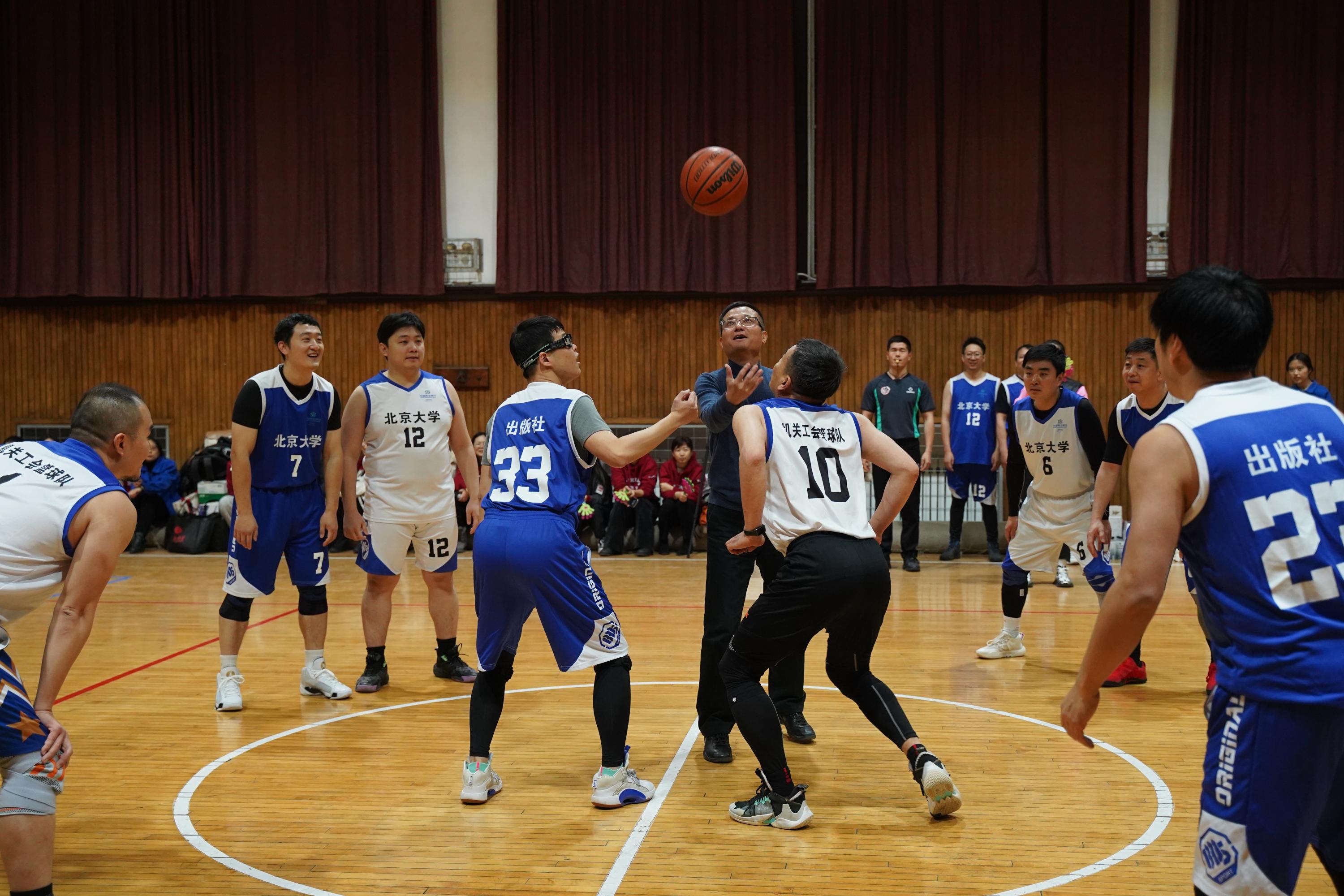 12月21日晚,北京大学第一体育馆内,北京大学出版社与国际合作部、机关工会联队篮球友谊赛如约拉开战幕。比赛分男、女两队分别对峙,女队以接力运球和定时投篮为主。比赛正式开始前,出版社夏红卫书记、国际合作部李昀部长、校工会田越副主席为比赛致开幕词。