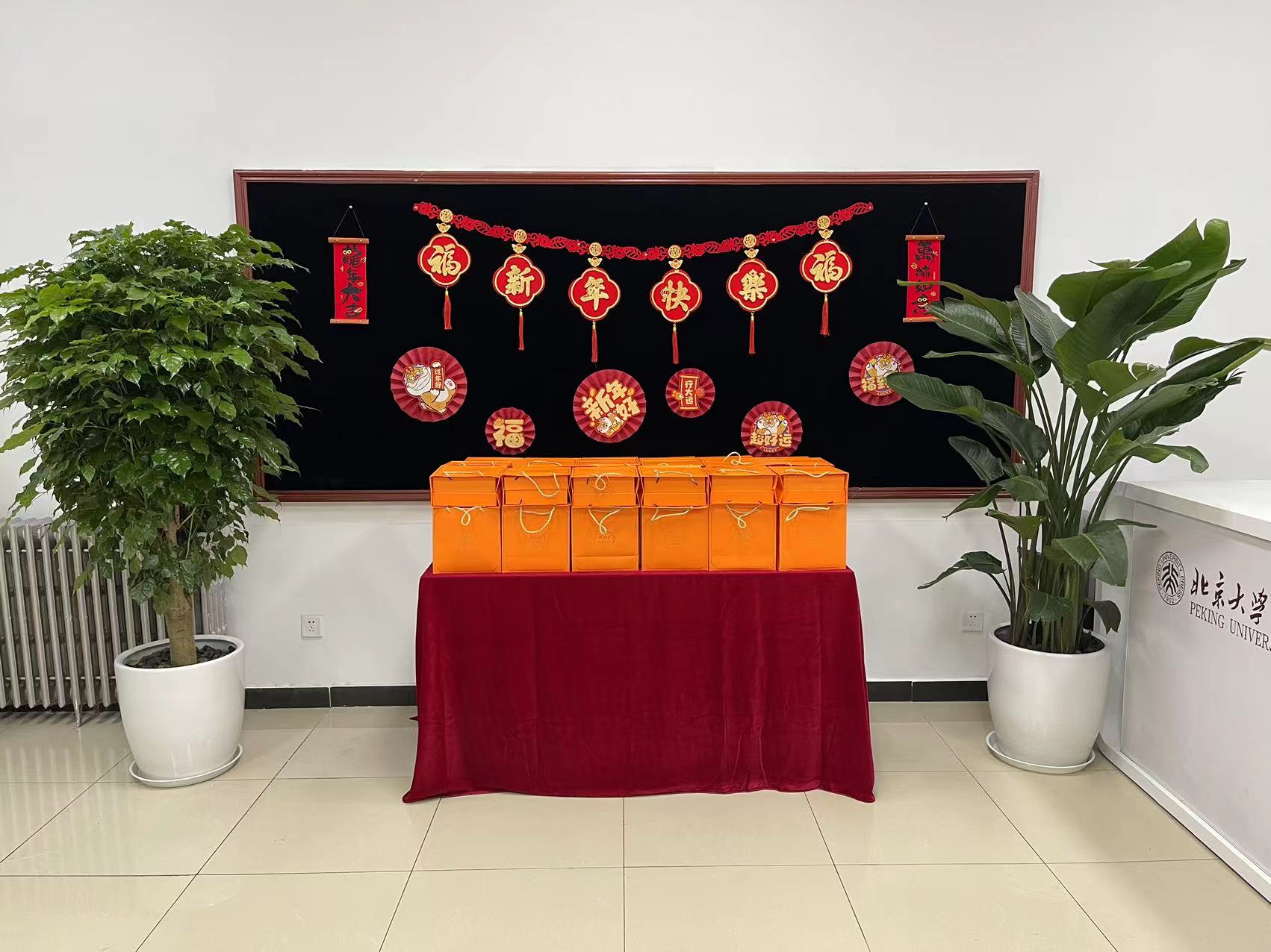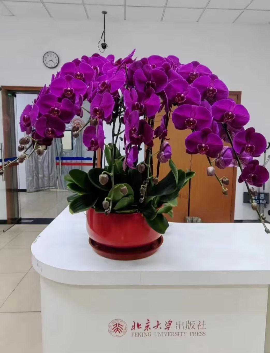 正月初十是出版社新春开工的第一天,工会委员们在社办公室的协助下对东西两个门厅进行了精心布置:窗花、对联和新春祝福红红火火,洋溢着节日的欢乐喜庆;青翠欲滴的绿植和鲜妍盛放的蝴蝶兰绽放着春天的蓬勃生机。