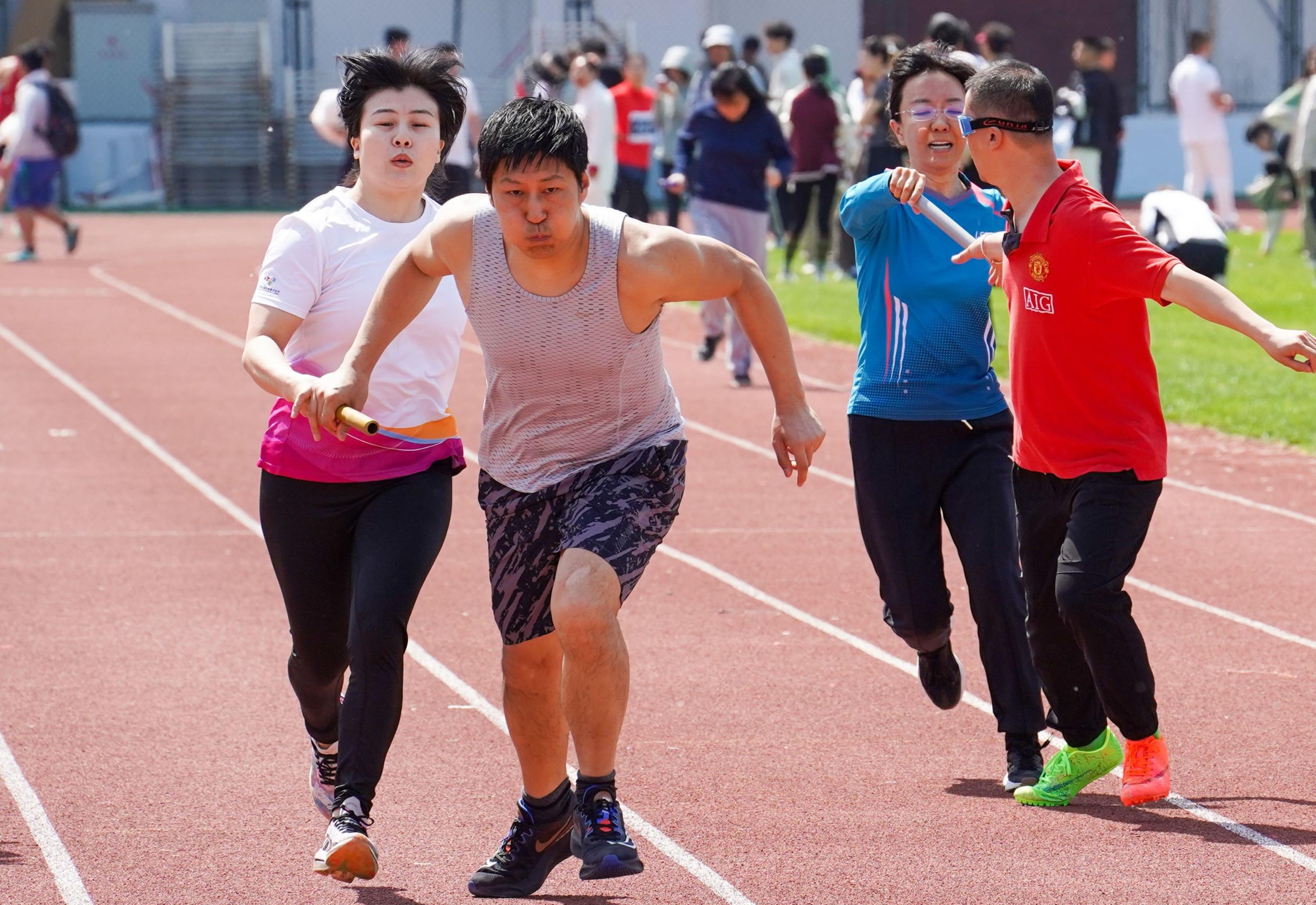 团体项目中,接力赛跑最为激动人心,出版社的运动员们配合默契、奋力拼搏,以1分03秒的成绩取得C组4x100米混合接力第4名的成绩。
