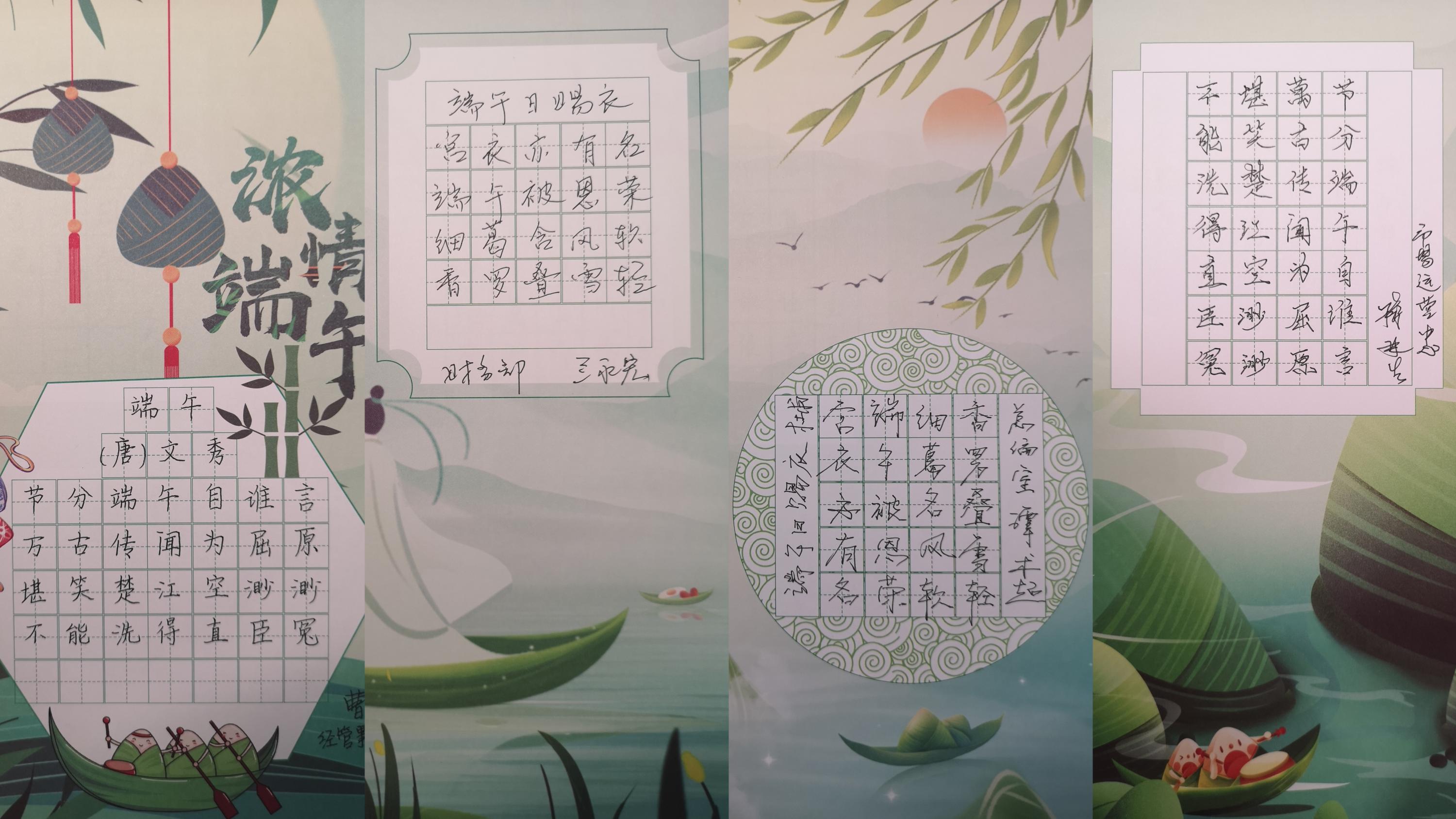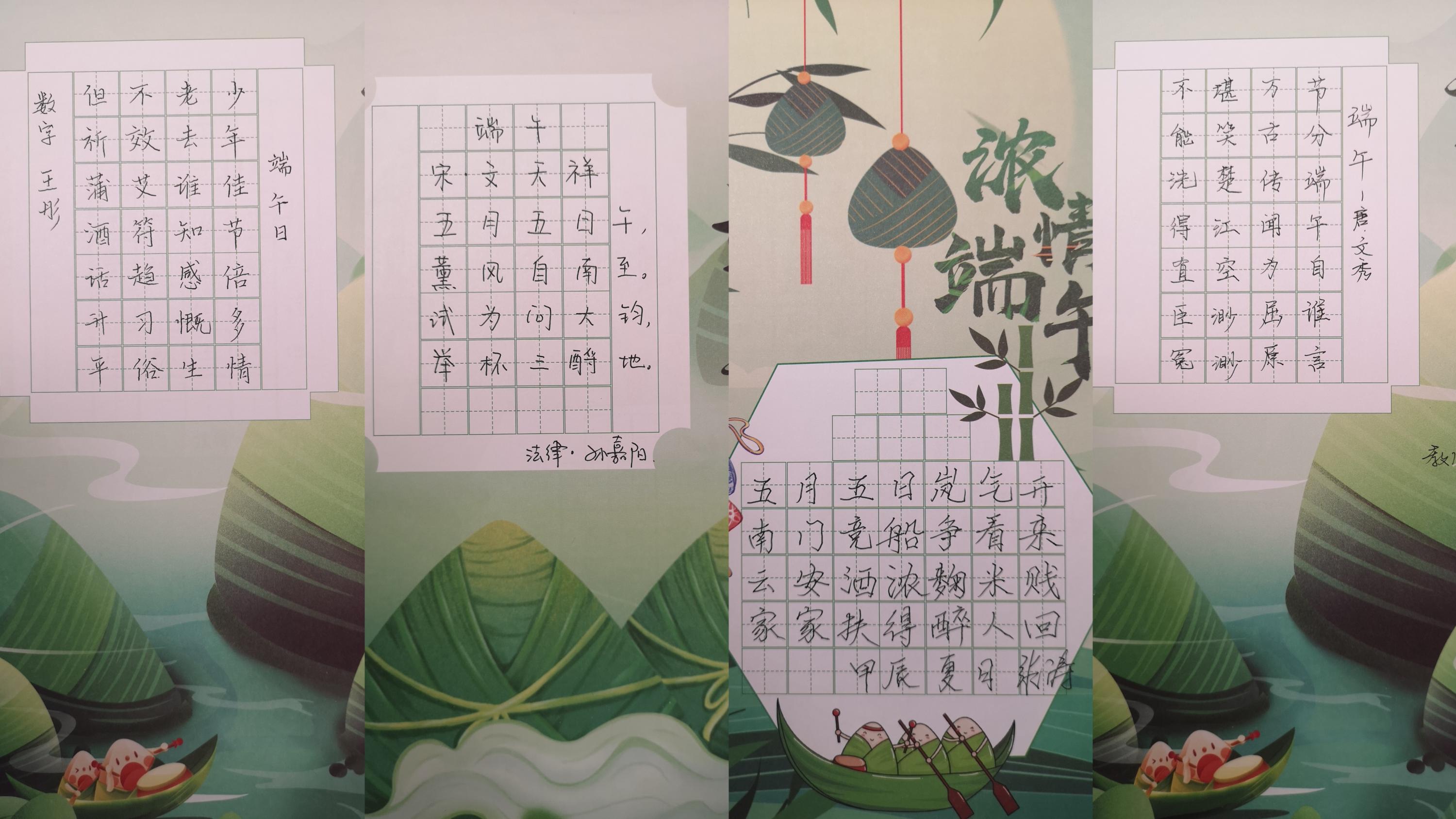 活动现场,老师们笔走龙蛇,抄写了包括唐代杜甫的《端午日赐衣》、文秀的《端午》、殷尧藩的《端午日》;宋代文天祥的《端午》、范成大的《竹枝歌》;元代张玉娘的《端午》;明代边贡的《午日观竞渡》、王士贞的《端午》等多首经典诗篇。这些作品不仅展现了老师们的书法才华,更传递了对屈原精神的传承和对传统文化的深刻理解。