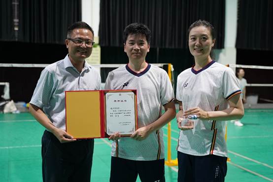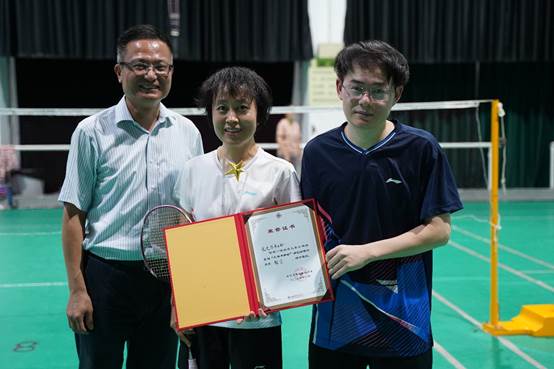 经过三天紧张而激烈的角逐,首届“未名书香杯”羽毛球赛四强诞生。决胜之日,出版社党委书记夏红卫也来到现场为运动员们加油助威,并给获奖运动员们颁发奖状和奖杯。