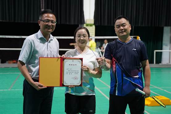 夏红卫书记为最佳女双组合李颖、兰婷颁奖