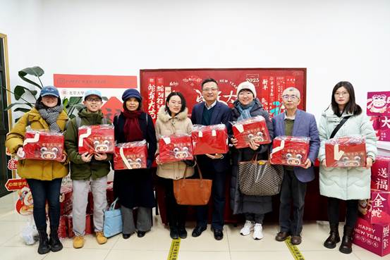 清晨,社领导和工会委员们早早地守候东西门厅。当员工们陆续走进出版社时,领导们热情地向他们拜年问候,并亲手送上精心准备的开工大吉礼包。这份礼包不仅承载着出版社对员工们的美好祝愿,也象征着新一年工作的顺利与成功。收到这份意外的惊喜,大家更是喜笑颜开,纷纷在朋友圈立牌处拍照打卡留念,记录下这温暖而美好的一刻。