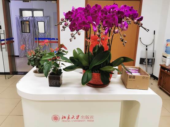 在社办公室的协助下,工会委员们将出版社东西门厅布置得春意暖暖,喜气洋洋。新春背景墙布置在门厅中央,对联和新春祝福语装点其上,向每一位踏入大门的员工传递着新年的祝福。青翠欲滴的绿植与盛放的蝴蝶兰相互映衬,为出版社注入了春天的蓬勃生机,营造出浓厚的节日氛围。