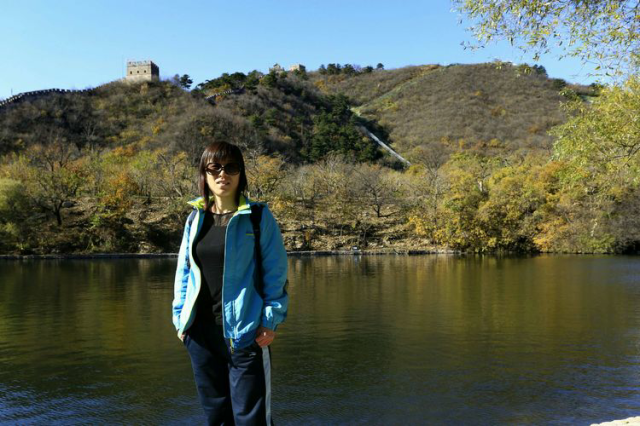 西门沿左手边走没多远就是一座桥,我们拍照的功夫,好多人已经先出发了,部分人选择了先爬长城,我们选择了先去半岛,就分开走了。由于小侯前天参加运动会把腿给撑了一下,腿有点疼,闫姐把她的登山杖给小侯用了,闫姐最棒了!