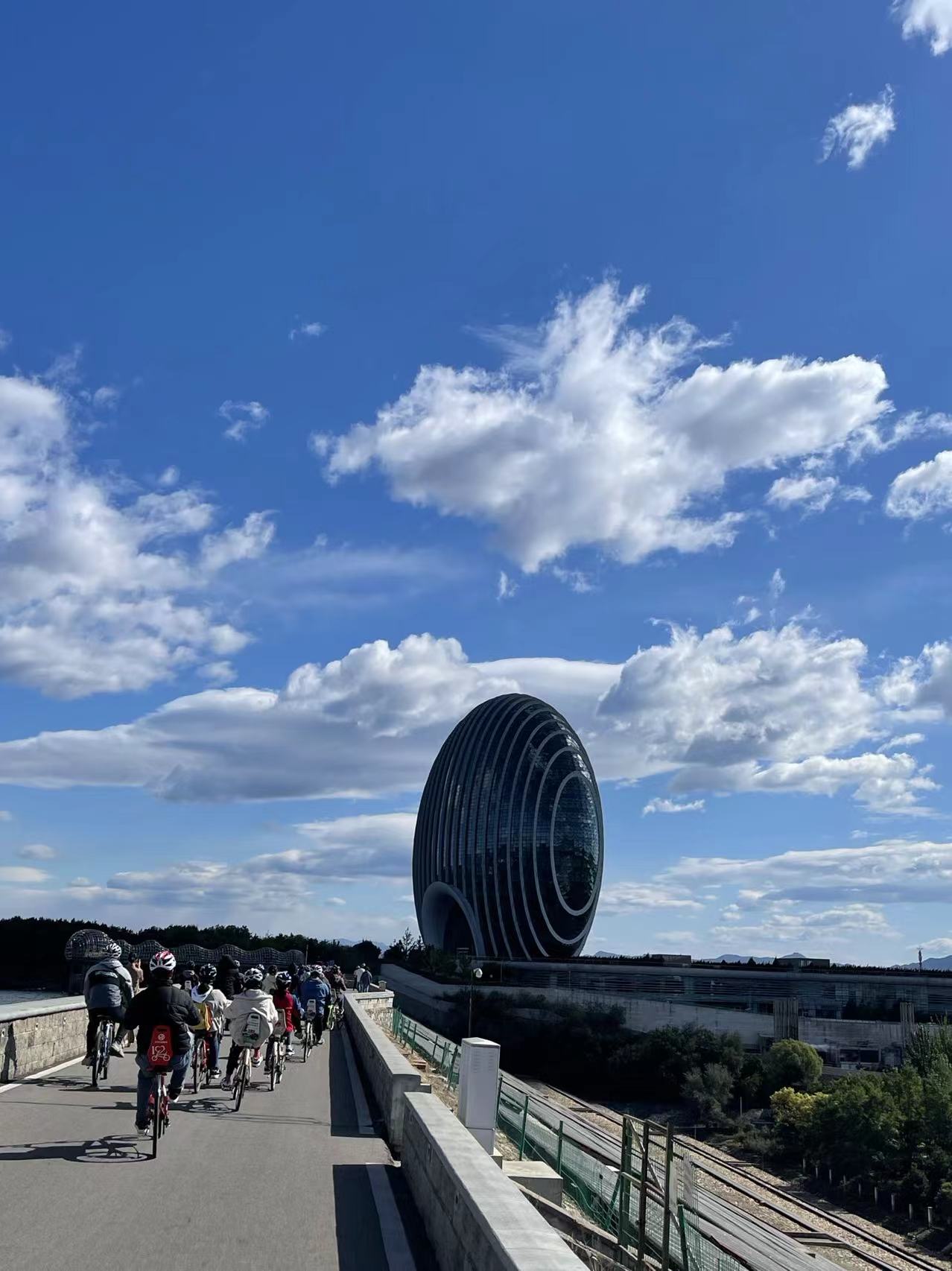 一场秋风席卷了北京多日的阴霾,晴朗的天空如大海般湛蓝,朵朵白云似杨帆起航的轻舟。在这秋高气爽的日子里,北京大学医院工会组织职工们到雁栖湖举行骑行活动,亲近大自然,享受好风景。
