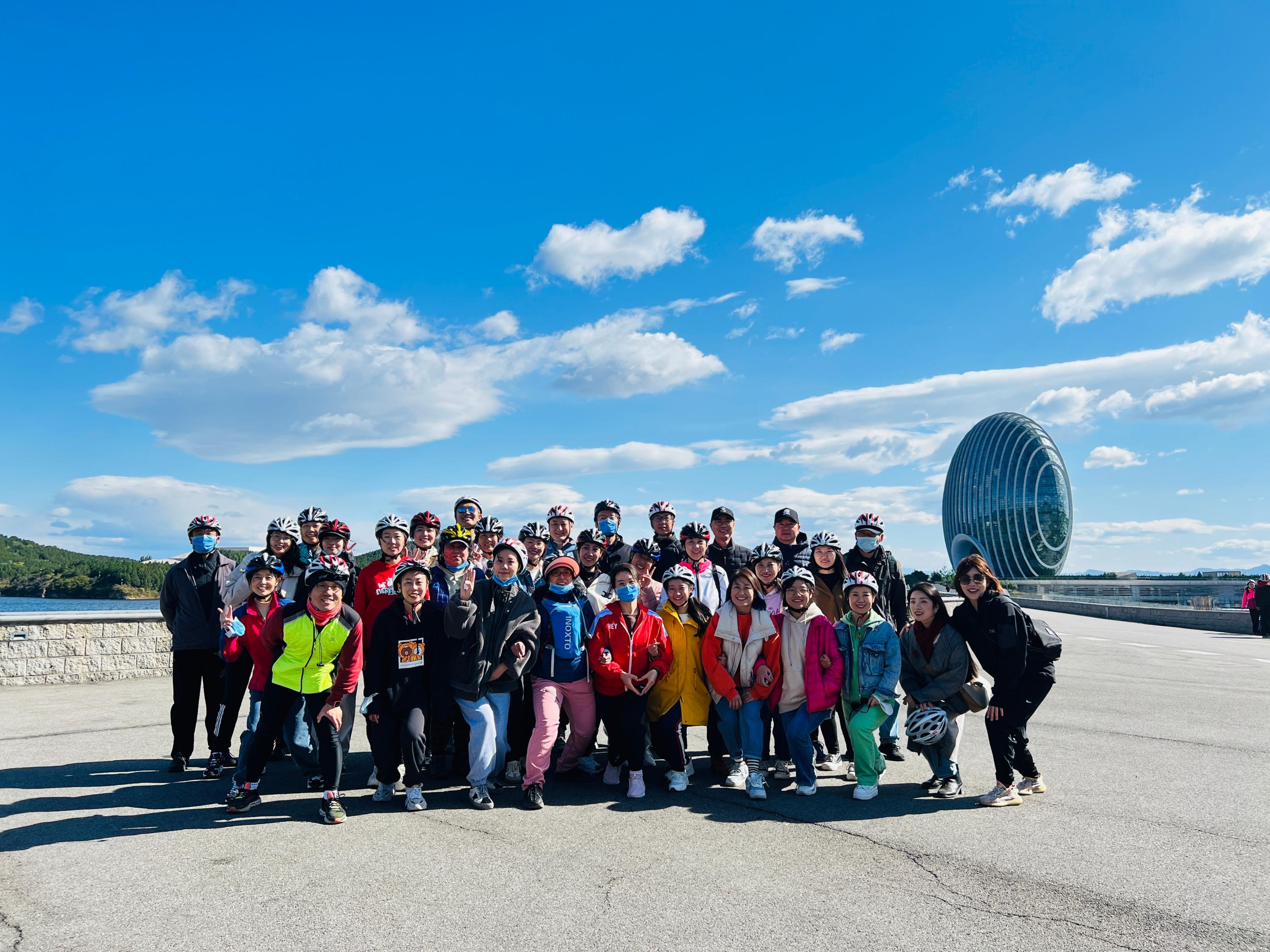 骑行在雁栖湖畔,欣赏蓝天碧水,骑行强健体魄,在活动中团队充满激情斗志,增进了大家的感情和团队凝聚力,背脊流下的汗水是激励同伴“前进”的号子,不断迎接困难、体验挑战、协同互助、释放压力,灌注新鲜力量,为全校师生的健康保驾护航!
