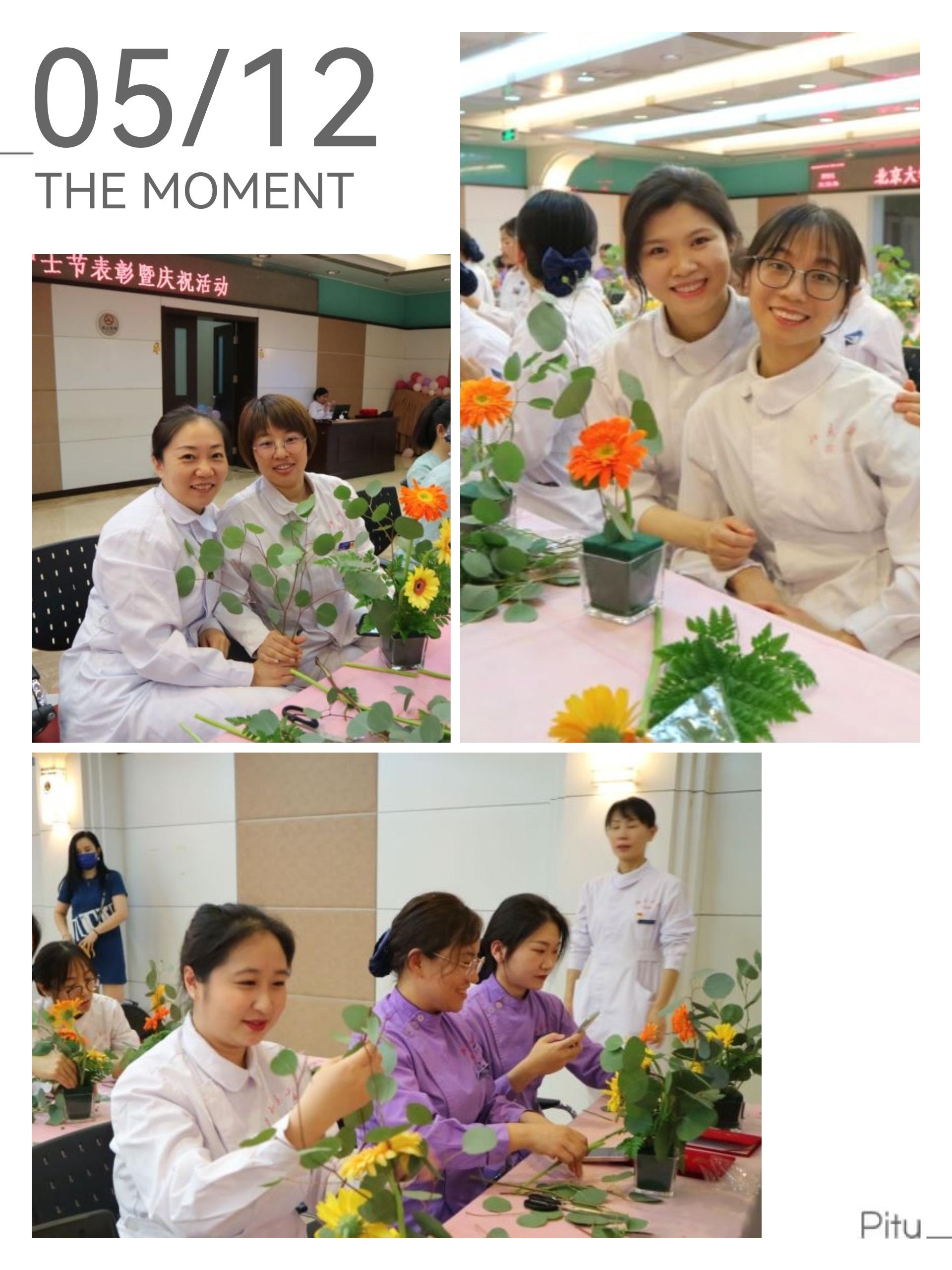 为了能够让大家愉悦心情,医院为大家安排了插花活动。请专业的花艺老师为大家指导。插花后播放电影《平凡英雄》,让大家放松心情。大家度过了一个内容丰富、形式多样、仪式感满满的护士节!